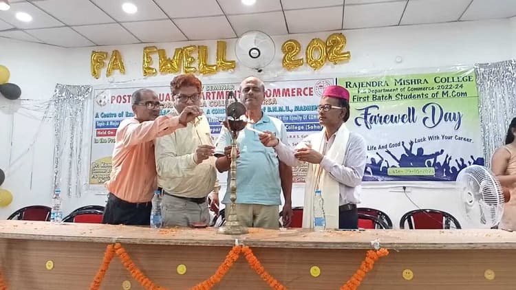 आरएम कॉलेज के वाणिज्य स्नाकोत्तर द्वितीय एवं चतुर्थ खंड के छात्र-छात्राओं ने सेमिनार का किया आयोजन सहरसा . राजेंद्र मिश्रा महाविद्यालय के वाणिज्य स्नाकोत्तर द्वितीय एवं चतुर्थ खंड के छात्र-छात्राओं के द्वारा बुधवार को सेमिनार का आयोजन किया गया. सेमिनार का शुभारंभ दीप प्रज्वलित कर डॉ कमलाकांत झा आयोजन सचिव वाणिज्य स्नाकोत्तर डॉ अरुप कुमार श्रीवास्तव, विभाग प्रमुख वाणिज्य स्नाकोत्तर डॉ ललित नारायण मिश्रा, अर्थशास्त्र विभागाध्यक्ष एवं समन्वयक और डॉ अक्षय कुमार चौधरी ने संयुक्त रूप से किया. मौके पर डॉ ललित नारायण मिश्रा ने कहा कि राजेंद्र मिश्र कॉलेज का पूर्व में स्थापना वाणिज्य कॉलेज के नाम से हुआ था. बाद में चलकर इस कॉलेज का नाम राजेंद्र मिश्र हुआ. डॉ अरुण कुमार श्रीवास्तव ने कहा कि हम इस महाविद्यालय के विद्यार्थियों को बोझ के तौर पर शिक्षा नहीं देते. हम इस तरह का शिक्षा देने का प्रयास कर रहे हैं कि शिक्षा के साथ-साथ बेरोजगारी जैसी स्थिति ना हो. उसको लेकर हम ज्यादा से ज्यादा मेहनत करते हैं एवं करते रहेंगे. डॉ कमलाकांत झा ने कहा कि क्षणिक खुशी से बेहतर है गम. बच्चे अपने जिंदगी में कुछ पाना चाहते हैं तो बैठना होगा पढ़ना होगा. उसके बाद कड़ी मेहनत करनी होगी. तब ही अच्छा मुकाम हासिल होगा. प्रधानाचार्य प्रो डॉ अमरकांत चौधरी की तबीयत खराब होने के कारण छात्र-छात्राओं ने उनके चेंबर में ही उन्हें सम्मानित किया. उन्होंने कहा कि वे बच्चे की उज्जवल भविष्य की कामना करते हैं. इसी प्रकार इसी संस्कार के साथ आगे बढ़े. उसके साथ-साथ फेयरवेल प्रोग्राम वाणिज्य स्नाकोत्तर द्वितीय एवं चतुर्थ खंड के छात्र-छात्राओं द्वारा एक दूसरे को गुलाब देकर गम के साथ खुशियां मनाया. कार्यक्रम में डॉ एसके सिंह, विशेष अतिथि डॉ अमरकांत चौधरी, डॉ ललित नारायण मिश्रा के साथ डॉ अरुण कुमार श्रीवास्तव, डॉ कमलाकांत झा, डॉ अक्षय कुमार चौधरी, डॉ अखिलेश कुमार मिश्रा, डॉ बीलो राम, डॉ सुभा पांडे, डॉ सिंधु सुमन, डॉ आलोक कुमार, डॉ रमा कुमारी, डॉ श्वेता शरन, डॉ अर्पणा, डॉ अवधेश कुमार, डॉ अंजलि, डॉ अरविंद चौधरी, डॉ इंद्रकांत झा, डॉ किशोर नाथ झा, डॉ राजू कुलकर्णी, स्नाकोत्तर द्वितीय खंड के छात्र-छात्राएं एवं स्नाकोत्तर चतुर्थ खंड के वाणिज्य संकाय के सभी छात्राएं मौजूद थे. फोटो – सहरसा 21 – कार्यक्रम का शुभारंभ करते अतिथि