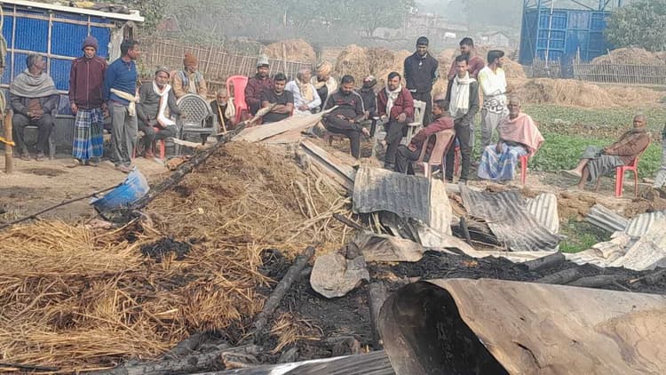सौरबाजार. आग लगने से तीन घर सहित हजारों की संपत्ति जलकर राख हो गयी. घटना सौरबाजार अंचल के बैजनाथपुर थाना क्षेत्र स्थित खजुरी पंचायत के परिहारपुर गांव में शनिवार देर रात घटित हुई है. जानकारी के अनुसार, परिहारपुर गांव निवासी विद्यानंद यादव, पिंटू कुमार, सिंटू कुमार, रितेश कुमार और शिवानंद यादव का घर जलकर पूरी तरह राख हो गया. घर में रखा कपड़ा, अनाज समेत अन्य सामान भी जल गया है. पीड़ित ने सौरबाजार अंचल और बैजनाथपुर थाना में आवेदन देकर उचित मुआवजा दिलाने की मांग की है. आग लगने से पीड़ित परिवार के सदस्यों को रहने, खाने और अपने मवेशियों को रखने में भारी परेशानियों का सामना करना पड़ रहा है. सूचना पर स्थानीय सरपंच श्रवण पोद्दार, समाजसेवी सुभाष कुमार, बिजेंद्र यादव समेत अन्य लोगों ने पहुंचकर पीड़ित परिवार को उचित मुआवजा दिलाने का आश्वासन दिया है.