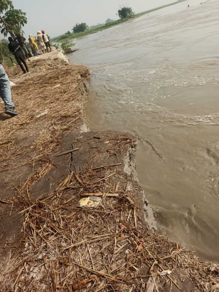 प्रखंड क्षेत्र के नौला पंचायत में कटाव का कहर उग्र, रसलपुर में प्रतिदिन 50 फीट से अधिक जमीन कटकर नदी में हो रही विलीन,चार दर्जन से अधिक लोगो का घर हो चुका है नदी में विलीन नवहट्टा. कोसी पूर्वी तटबंध के अंदर नौला पंचायत के रसलपुर वार्ड नंबर 12 महादलित टोले में चार दर्जन से अधिक परिवार का घर कटकर नदी में विलीन हो गया है. वहीं जल संसाधन विभाग की ओर से कराया जा रहा कटाव निरोधात्मक कार्य भी बेअसर साबित हो रहा है. कटाव पर निरोधात्मक कार्य का कोई प्रभाव नहीं पड़़ रहा है. प्रतिदिन 50 फीट से अधिक की दूरी में जमीन कटकर नदी में विलीन हो रही है. प्रतिदिन दर्जनों परिवार का आशियाना कट रहा है. लोग अपने माल मवेशी, बाल बच्चों के साथ घर तोड़कर एक जगह से दूसरी जगह ऊंचे स्थान पर शरण लेने के लिए विवश हैं. प्रखंड प्रमुख शमीम अख्तर पप्पू ने बताया कि जल संसाधन विभाग के अधिकारियों से बात हुई तो उन्होंने यह कहा कि बंबू पीलिंग या परकोपाइन का जो कार्य कराया जायेगा. इसके लिए सितंबर माह में किये गये कार्यों का भुगतान नहीं हो पाता है. इसलिए तत्कालीन पेड़ की झाड़ी से ही कटाव निरोधात्मक कार्य किया जा रहा है. जो बेअसर साबित हो रहा है. अगर जल संसाधन विभाग के द्वारा बेहतर ढंग से बंबू पाइलिंग का कार्य नहीं कराया गया तो 200 से अधिक परिवार वाली आबादी काटकर नदी में विलीन हो जायेगी. अंचल अधिकारी मोनी बहन व प्रखंड प्रमुख शमीम अख्तर पप्पू ने कटाव स्थल का जायजा लेते हुए जिला प्रशासन से शीघ्र बेहतर ढंग से कटाव निरोधात्मक कार्य करने की मांग की है.