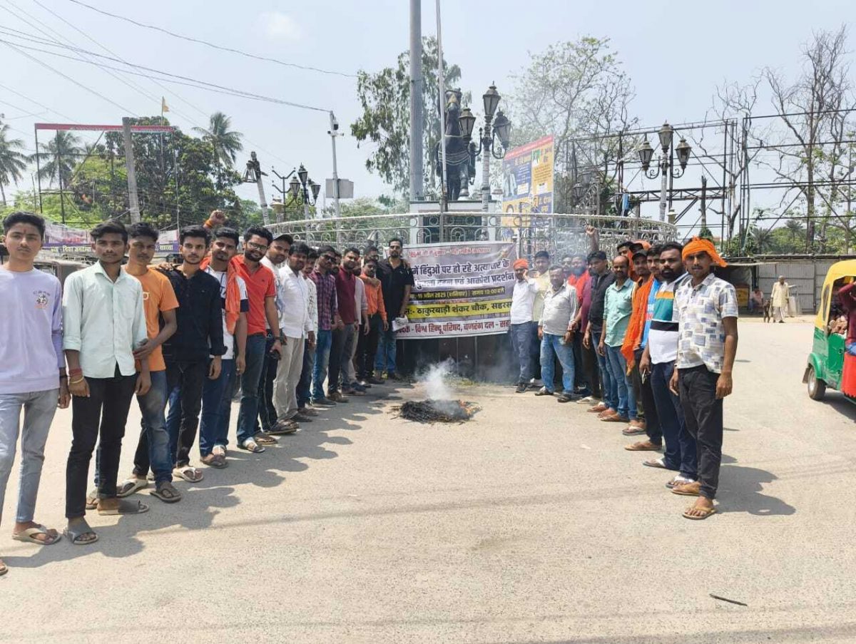 ममता बनर्जी का किया पुतला दहन, राष्ट्रपति के नाम डीएम को सौंपा मांग पत्र सहरसा . विश्व हिंदू परिषद व बजरंग दल द्वारा बंगाल की ममता सरकार के विरोध में शनिवार को आक्रोश मार्च निकाला गया. साथ ही वीर कुंवर सिंह चौक पर मुख्यमंत्री ममता बनर्जी का पुतला दहन कर राष्ट्रपति के नाम जिलाधिकारी को ज्ञापन सौंपा. जिला मंत्री प्रणव मिश्रा ने बताया कि वक्फ कानून के विरोध की आड़ में संपूर्ण बंगाल को हिंसा की आग में जलाया जा रहा है. हिंदुओं को प्रताड़ित किया जा रहा है, राष्ट्र विरोधी व हिंदू विरोधी तत्वों को निर्बाध रूप से अपने षडयंत्रों को क्रियान्वित करने की खुली छूट दी जा रही है. उससे स्पष्ट लगता है कि बंगाल की स्थिति अत्यधिक चिंताजनक है. मुर्शिदाबाद से प्रारंभ हुई यह भीषण हिंसा अब संपूर्ण बंगाल में फैलती दिखाई दे रही है. शासकीय तंत्र दंगाइयों के सामने केवल निष्क्रिय ही नहीं कई स्थानों पर इनका सहायक या प्रेरक बन गया है. इससे पहले कि स्थिति नियंत्रण से बाहर हो जाए, केंद्र सरकार को प्रशासन का नियंत्रण व संचालन अपने हाथ में लेकर राष्ट्र विरोधी व हिंदू विरोधी तत्वों को उनके कुकर्मों के लिए कठोर सजा दिलानी चाहिए. जिला सह मंत्री अभिषेक सिंह ने बताया कि मुस्लिम भीड़ द्वारा 11 अप्रैल को वक्फ कानून के विरोध के नाम पर किया गया हिंसक प्रदर्शन कानून बनाने वाली सरकार के विरोध में नहीं बल्कि हिंदुओं पर हिंसक आक्रमण के रूप में था. जबकि यह एक शुद्ध संवैधानिक प्रक्रिया थी. उन्मादी जिहादी भीड़ ने हिंदुओं के दो सौ से अधिक घरों और व्यावसायिक दुकानों को लूटकर जलाया. उन्होंने बंगाल में अविलंब राष्ट्रपति शासन लगाने, हिंसा की जांच एनआईए द्वारा कराने, दोषियों को अविलंब दंडित करने, कानून व्यवस्था का संचालन केंद्रीय सुरक्षा बलों के हाथों में देने, बांग्लादेशी व रोहिंग्या घुसपैठियों की पहचान कर उनको निष्कासित करने, बंगाल व बांग्लादेश की 450 किलोमीटर की सीमा पर तार लगाने का काम अविलंब प्रारंभ करने की मांग की. आक्रोश मार्च में जिला मंत्री प्रणव मिश्रा, जिला अध्यक्ष पंपल सिंह, सह मंत्री अभिषेक सिंह, मानस मिश्रा, अभिनंदन, आशीष गुप्ता, पुनीत आनंद, एसके नायक, सुभम आनंद, चिंटू पोद्दार, रोहित झा, प्रिंस सिंह, विनीत सिंह, सास्वत यादव, सौरभ भगत, गौरव परिहार, सुरजीत कुशवाहा, सोनू गुप्ता, डॉ अखिलेश सिंह, टसन सोनू, संजय सारंग, सावन यादव, प्रणव सिंह, प्रतीक आनंद, रंजन पासवान, ललन पासवान सहित अन्य मौजूद थे.