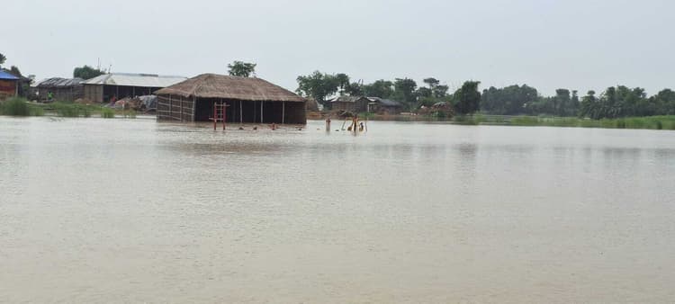 सूखा चूड़ा खाकर लोग काट रहे समय,कोसी नदी में चार लाख क्यूसेक डिस्चार्ज के बाद स्थिति भयावह, दहशत में जी रहे हैं लोग प्रतिनिधि, नवहट्टा कोसी नदी विकराल हो गयी है. कोसी तटबंध के अंदर सैकड़ों गांव में बाढ़ ने कहर बरपाना शुरू कर दिया है. नेपाल स्थित कोसी बराज से शनिवार व रविवार को 3 बजे तक में 4 लाख क्यूसेक के करीब पानी डिस्चार्ज किया गया. कोसी बराज के सभी 56 फाटक खोल दिए गये हैं. वहीं कोसी बराज पर खतरे का सिग्नल जला दिया गया है. कोसी में इस साल का सबसे अधिक पानी छोड़ा गया है. इससे कोसी नदी उफान पर है. देर रात तक पानी ने निचले इलाके में तबाही मचानी शुरू कर दी है. बता दें कि मानसून आते ही नेपाल के कोसी जल अधिग्रहण क्षेत्र में कई दिनों से भारी बारिश हो रही है. इस कारण नेपाल से आने वाली कोसी नदी ने प्रखंड क्षेत्र दो दर्जन गांव में तबाही मचाना शुरू कर दी है. मालूम हो कि बाढ़ से सात पंचायत के दर्जनों घर-आंगन में पानी फैल गया है. लोगों को घर से अपने आंगन निकलना भी संभव नहीं नहीं हो पा रहा है. लोग अपने घरों में सूखा चूड़ा, नमक खाकर समय बिताने को विवश हो रहे हैं. अंचल प्रशासन के द्वारा अब तक बाढ़ पीड़ित परिवारों के लिए विभिन्न चिन्हित घाटों पर सरकारी नाव परिचालन के अलावे कोई प्रशासनिक व्यवस्था नहीं की गयी है.
