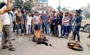 आक्रोशित लोगों ने सड़क जाम कर की आगजनी