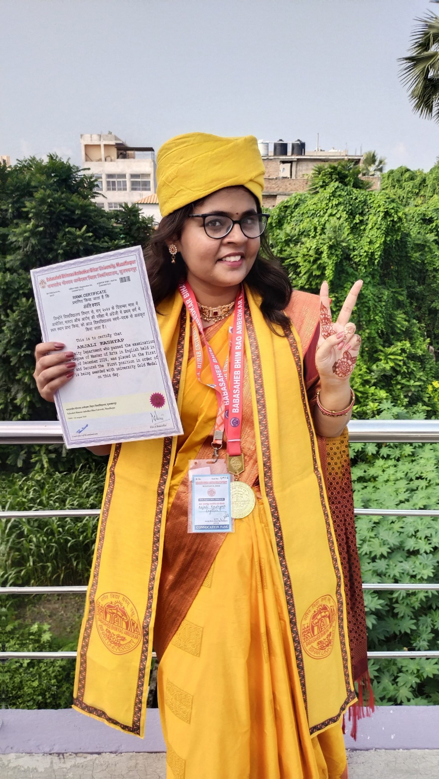 Samastipur News: पूसा : स्थानीय उमा पांडेय महाविद्यालय की छात्रा अंजली कश्यप को दीक्षांत समारोह में गोल्ड मेडल से सम्मानित किया गया. वह सत्र 2019 -22 में अंग्रेजी प्रतिष्ठा में टॉपर थी. वह मूलरूप से मुजफ्फरपुर जिले के सकरा थाना क्षेत्र के दुबहा बुजुर्ग गांव की रहने वाली है. शोभा कुमारी एवं शिक्षक अजय कुमार की पुत्री अंजली कश्यप बचपन से ही मेधावी थी. उमा पांडेय कॉलेज के प्राचार्य डॉ शशि भूषण कुमार, व्याख्याता डॉ भवेश शांडिल्य, डा दीपक भारद्वाज, डॉ प्रमोद कुमार, डॉ मुकेश महतो, डा प्रियंका कुमारी, डॉ राजेश रंजन, श्यामकिशोर यादव, रामसागर राय आदि ने बधाई दिया है.