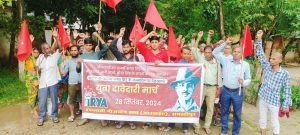 Birth anniversary of Shaheed Azam Bhagat Singh: समस्तीपुर : शहीदे आजम भगत सिंह की जयंती पर इंकलाबी नौजवान सभा ने युवा दावेदारी मार्च निकाला. माले जिला कार्यालय से निकल कर मार्च मगरदही घाट स्थित भगत सिंह स्टैचू पर माल्यार्पण कर सभा की गई. नेतृत्व आरवाईए जिला सचिव रौशन कुमार ने किया. जिला सचिव रौशन कुमार, राहुल राय, नवीन कुमार, तनंजय प्रकाश, जितेंद्र कुमार आदि थे.