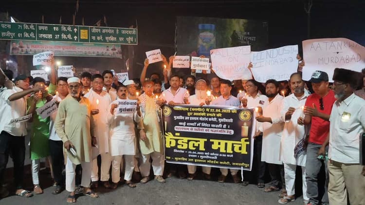 Samastipur News:सरायरंजन : मुजाहिद ऊल इस्लाम मुहर्रम कमेटी के बैनर तले मुसरीघरारी में पहलगाम कश्मीर में हुए आतंकवादी हमले में शहीद को श्रद्धांजलि अर्पित करने के लिए कैंडल मार्च निकाला गया. कैंडल मार्च को मुसरीघरारी के पटोरी रोड से शुरू किया गया. इसके बाद चारों तरफ रोड में मार्च करते हुए चौराहे पर श्रद्धांजलि सभा की गयी. 2 मिनट का मौन रखकर श्रद्धांजलि दी गई. मौके पर समस्तीपुर के विधायक अख्तरूल इस्लाम शाहीन, नसीम अब्दुल्लाह, मो. फिरोज, मो. सहबजान, असरार दानिश, गुलाब कैसर, एमडी नौशाद, दानिश कमाल, एमडी रिजवान, एमडी अजमल, फलेंद्र राम, अशोक रजक, मो. फरहान, मनीष पांडेय आदि थे.