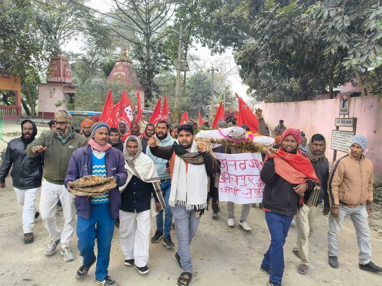 Samastipur News:उजियारपुर : प्रखंड मुख्यालय में भाकपा माले कार्यकर्ताओं का जनहित से जुड़े तीस सूत्री मांगों के समर्थन में अनशन पांचवें दिन भी जारी रहा. अनशन पर प्रखंड सचिव गंगा प्रसाद पासवान, पप्पू यादव, अमरजीत पॉल, शिव प्रसाद गोपाल, मो. शमीम मंसूरी डटे हैं. कार्यकर्ताओं ने अनशन स्थल से मंगलवार को अंचलाधिकारी सहित अन्य अधिकारियों का अर्थी जुलूस निकाल कर प्रदर्शन किया. मुख्य मांगों में एजीएम और गोदाम के ठेकेदार पर कार्रवाई करने, उजियारपुर थाना से जुड़े मांगों पर त्वरित कार्रवाई करने, पीएचडी विभाग द्वारा फर्जी कार्यों का लाखों रुपए निकासी की उच्चस्तरीय जांच कराने, सरकारी दर पर किसानों को रसायनिक खाद उपलब्ध कराने, बिजली विभाग में पोल-तार लगाने में अवैध वसूली पर रोक लगाने, दाखिल-खारिज और पट्टीदारों के जमाबंदी अलग करने में लाखों रुपए की उगाही करने पर रोक लगाने सहित दर्जनों मांगें शामिल हैं. कार्यकर्ताओं ने मांगों को पूरा करने का नारा लगाते हुए संबंधित विभाग के सामने प्रदर्शन कर आरा मिल चौराहा पर अर्थी का दहन किया गया. मौके पर जिला स्थायी कमेटी सदस्य फूलबाबू सिंह, फूलेन्द्र प्रसाद सिंह, दिलीप कुमार राय, रामभरोस राय, विजय कुमार राम, रोहित कुमार पासवान, मो. फरमान, रामसगुन सिंह, रामसुदीन सिंह, निर्धन शर्मा, मो. सकूर, तिलो कुमार सदा, महेश कुमार सिंह, जंग बहादुर पॉल, फूलन देवी, रीना देवी, प्रवीण आंनद, मो. कमालुद्दीन, मो. अलाउद्दीन, सुशील कुमार सिंह, नवीन प्रसाद सिंह, हरिदर्शन कुमार, तनंजय प्रकाश, दीपक यदुवंशी आदि मौजूद थे.