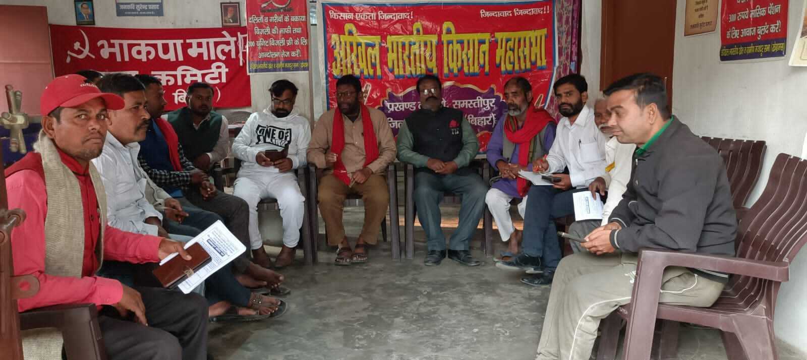 Samastipur News: समस्तीपुर : अखिल भारतीय किसान महासभा, अखिल भारतीय खेत एवं ग्रामीण मजदूर सभा एवं ऐक्टू की संयुक्त बैठक भाकपा माले जिला कार्यालय में हुई. अध्यक्षता खेग्रामस जिला सचिव जीवछ पासवान ने की. संचालन जिलाध्यक्ष उपेन्द्र राय ने किया. इसमें अखिल भारतीय किसान महासभा के जिलाध्यक्ष महावीर पोद्दार ने कहा कि राज्यव्यापी आंदोलन के तहत 26 नवम्बर को बिहार के किसान व मजदूर अपनी मांगों को लेकर जिला मुख्यालय पर एकजुट होकर विरोध-प्रदर्शन करने का निर्णय लिया है. इसमें एमएसपी की कानूनी गारंटी, फसल बीमा योजना को लागू करने, जबरन भूमि अधिग्रहण पर रोक, श्रम शक्ति नीति और चार श्रम संहिता को रद्द करने, सार्वजनिक क्षेत्र के उपक्रम और सार्वजनिक सेवाओं का निजीकरण और कारपोरेट घरानों को बेचने के नये हमले को रोकने की मांग निर्धारित की गई है. बैठक में महावीर पोद्दार, प्रभात कुमार, टिन्कू यादव, तनजय प्रकाश, अर्जुन दास, जयन्त कुमार, उमेश कुमार महतो, संजीत कुमार चौपाल, राज कुमार दास सहित अन्य थे.