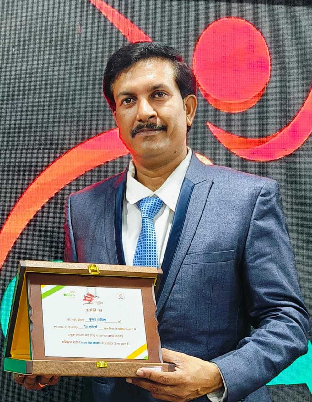 पूसा . बिहार राज्य खेल प्राधिकरण पटना के तत्वावधान में बिहार राज्य खेल सम्मान 2025 से बेहतरीन प्रशिक्षण प्रदान करने वाले प्रशिक्षकों को सम्मानित किया गया. यह सम्मान मुख्यमंत्री नीतीश कुमार के माध्यम से 5 अक्टूबर 2025 को यह अवार्ड अंतर्राष्ट्रीय स्तर पर मेडल लाने वाले खिलाड़ियों को राजगीर खेल परिसर में दिया गया. इसके बाद बाकी खिलाड़ी व प्रशिक्षकों को प्राधिकरण के माध्यम से निर्धारित विभिन्न समयानुसार पुरस्कार प्रदान किया गया. इसी क्रम में गुरुवार को प्रशिक्षकों को सम्मानित किया गया. जिसमें पैरा स्पोर्ट्स में प्रशिक्षण देने और टीम के द्वारा राष्ट्रीय स्तर पर बेहतरीन प्रदर्शन करने के लिए पड़ाव पोखर रोड, मुजफ्फरपुर निवासी सह जिला शिक्षा एवं प्रशिक्षण संस्थान के व्याख्याता कुमार आदित्य को राज्य खेल सम्मान (प्रशिक्षक) 2025 से प्रशस्ति पत्र सह प्रतीक चिह्न देकर सम्मानित गया. पुरस्कार राशि के रूप में शीघ्र ही 2 लाख रुपए डीबीटी के माध्यम से प्रदान की जायेगी. कुमार आदित्य को यह सम्मान दिव्यांग खेलकूद में लगातार बेहतरीन प्रदर्शन करने के लिए दिया गया है. इस उपलब्धि के लिए कामिनी राजन, डॉ रणवीर कुमार राजन, प्राचार्य डॉ श्वेता सोनाली, व्याख्याता अनिल कुमार सिंह, डॉ अंकिता, सुरेश कुमार, शिव किशोर, संयोग कुमार प्रेमी, यशवंत कुमार शर्मा, पंडित विनय कुमार, डॉ. रुबी कुमारी, मो. रिजवान अंसारी, डॉ. अनिल पाठक, रंजन कुमार, चंद्रमोहन कुमार, रितेश कुमार, आशुतोष, डॉ. शिवाजी कुमार, संदीप कुमार ने बधाई दिया है.