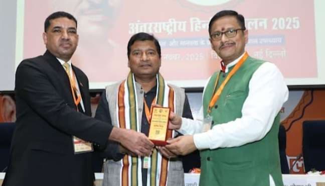 Samastipur News:समस्तीपुर : शहर के आरएनएआर काॅलेज में कार्यरत सहायक प्राध्यापक (हिंदी) स्नातकोत्तर हिंदी विभाग के डॉ वीरेंद्र कुमार दत्ता को राष्ट्रीयता और मानवता के प्रतीक पंडित दीनदयाल उपाध्याय जयंती पर आयोजित विश्व हिंदी अंतरराष्ट्रीय सम्मेलन सम्मानित किया गया. पंडित दीनदयाल उपाध्याय के शैक्षिक विचार दर्शन विषय पर व्याख्यान के लिए अंग वस्त्र एवं पं दीनदयाल उपाध्याय के प्रतीक चिन्ह भेंट कर विश्व हिंदी परिषद के महासचिव डॉ नवीन कुमार एवं अफ्रीका के राजदूत गबरू टेकले ने सम्मानित किया. डॉ दत्ता को सम्मानित किए जाने पर आरएनआर कॉलेज के प्रधानाचार्य प्रो. दिलीप कुमार, पूर्व प्रधानाचार्य प्रो सुरेंद्र प्रसाद, बर्सर डॉ राजीव रौशन व अन्य शिक्षक-शिक्षकेत्तर कर्मचारियों ने बधाई दी है. डॉ वीरेंद्र ने बताया कि वे भारत के वैसे महान विभूतियां में से एक है, जिनके दर्शन आज भी समाज और राष्ट्र के बीच समरसता के प्रतीक है. पंडित दीनदयाल जी का वैचारिक संसार अत्यंत व्यापक और समग्रता को लिए हुए हैं.