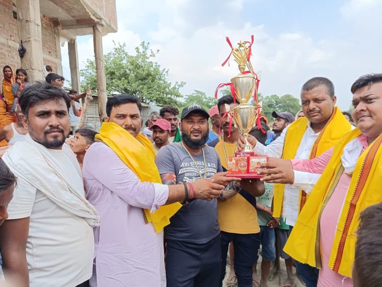 मोहिउद्दीननगर : खेल से युवाओं में प्रतिस्पर्धी गुणों का विकास होता है. वहीं, सामाजिक सद्भाव को बढ़ावा मिलता है. युवा अपनी सकारात्मक ऊर्जा का उपयोग समाज व राष्ट्र निर्माण में करें. यह बातें दशहारा में रविवार को आयोजित क्रिकेट टूर्नामेंट के फाइनल मुकाबले के उपरांत पुरस्कार वितरण समारोह के दौरान विधायक राजेश कुमार सिंह के प्रतिनिधि रवीश कुमार सिंह ने कही. इससे पूर्व फाइनल मैच दशहारा और धर्मपुर बांदे के बीच खेला गया. दशहारा के कप्तान ने टॉस जीतकर पहले बल्लेबाजी करने का निर्णय लिया. निर्धारित 16 ओवर के मैच में दशहारा की टीम ने 6 विकेट के नुकसान पर 197 रनों का गगनचुंबी स्कोर बनायी. लक्ष्य का पीछा करने उतरी धर्मपुर बांदे की टीम महज 14 ओवर में 154 रन बनाकर ऑल आउट हो गई. इस प्रकार दशहारा की टीम 43 रनों से फाइनल मुकाबले को जीतकर विजेता बनने में गौरव हासिल की. टूर्नामेंट कमेटी की ओर से बेहतरीन खेल के लिए दशहारा के हरफनमौला खिलाड़ी अमरजीत को मैन ऑफ द मैच व मैन ऑफ द सीरीज का पुरस्कार अभिषेक को दिया गया. अंपायर की भूमिका विपिन कुमार व राजीव कुमार ने निभायी. आंखों देखा हाल चितरंजन कुमार व चंदन कुमार ने सुनायी. विजेता व उपविजेता टीम को ट्रॉफी संयुक्त रूप से रवीश कुमार सिंह, जिला पार्षद अनुज कुमार व पंसस उमाशंकर राय ने प्रदान की. इस मौके पर शत्रुघ्न राम, राकेश राम, पंकज राम, धर्मेंद्र राम, रजनीकांत राम, ओम प्रकाश, गुड्डू कुमार, दिलीप राम मौजूद थे.