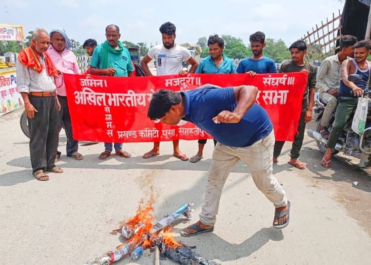 पूसा : स्थानीय बूढ़ी गंडक पुल चौक के समीप अखिल भारतीय खेत एवं ग्रामीण मजदूर सभा के कार्यकर्ताओं ने हरपुर महम्मदा पंचायत के रोजगार सेवक का पुतला जलाकर नाराजगी जतायी. कार्यकर्ताओं ने मौके पर सभा की. अध्यक्षता प्रखंड खेग्रामस अध्यक्ष मो. इश्तेखार ने की. सचिव सुरेश कुमार ने कहा कि हरपुर महम्मदा पंचायत में संचालित मनरेगा योजनाओं में भ्रष्टाचार व्याप्त है. उन्होंने रोजगार सेवक पर कार्रवाई की मांग की. मौके पर माले प्रखंड सचिव अमित कुमार, केदार राय, सद्दाम, जहांगीर, मुख्तार, गुलफाम, राजा कुमार, दिलीप कुमार, मो. वकील थे.