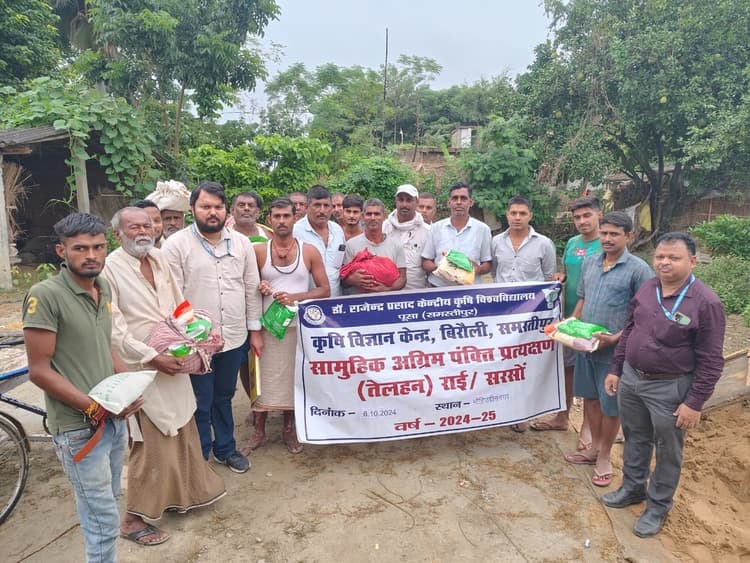Samastipur News: Farmers will become self-reliant by cultivating oilseeds मोहिउद्दीनगर : प्रखंड की रासपुर पतसिया पश्चिम पंचायत के सुल्तानपुर गांव में रविवार को कृषि विज्ञान केंद्र बिरौली की ओर से सरसों और राई की खेती के लिए प्रशिक्षण का आयोजन किया गया. जिसकी अध्यक्षता पूर्व सरपंच फूल कुमारी ने की. संचालन प्रो.भारतेंदु सिंह ने किया. इस दौरान कृषि वैज्ञानिक डॉ. रविंद्र कुमार तिवारी ने राजेंद्र प्रसाद केंद्रीय कृषि विश्वविद्यालय के सौजन्य से विकसित किए तेलहन बीजों के प्रभेदों के बारे में विस्तृत जानकारी किसानों की दी. उन्होंने कहा कि दियारांचल क्षेत्र में सरसों व राई की उन्नत खेती से किसानों की आय न सिर्फ दोगुनी होगी बल्कि आत्मनिर्भर बनने का मार्ग भी प्रशस्त होगा. डॉ. सुमित कुमार ने कहा कि समुचित पोषक तत्व प्रबंधन एवं समय से तेलहन की बुआई करके अच्छी उत्पादकता प्राप्त की जा सकती है. कहा कि भारतीय मृदाओं में सल्फर, जिंक जैसे सूक्ष्म पोषक तत्वों की कमी होती है. फसल उत्पादकता में बढ़ोतरी के लिए इन पोषक तत्वों का उपयोग करना नितांत जरूरी है. कृषि वैज्ञानिक खेती में लागत को कम करने व उत्पादकता बढ़ाने के लिए लगातार कार्य कर रहे हैं. वहीं सरकार भी इस दिशा में लगातार प्रयत्नशील है. इस मौके पर किसान अनंत कुमार सिंह, मणि भूषण सिंह, संतोष सिंह अरुण सिंह,नगीना सिंह, भोगेंद्र राय, देव बल्ली राय, हरेंद्र सिंह, पतिराम सिंह, विक्रमादित्य सिंह मौजूद थे.