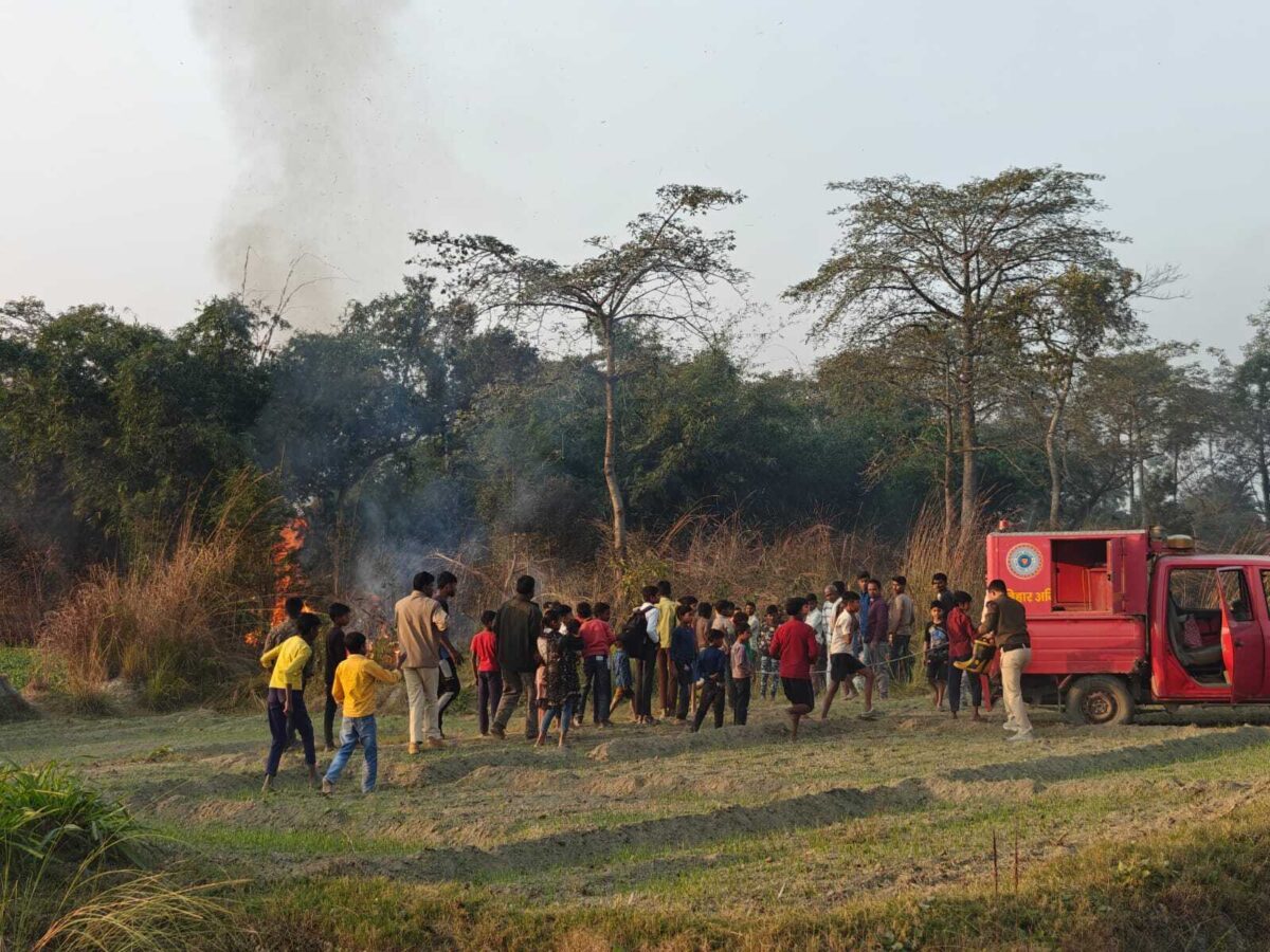 उजियारपुर . थाना क्षेत्र के गावपुर पंचायत के पंचायत सरकार भवन के पीछे बासवाडी में गुरुवार की दोपहर करीब दो बजे दिन में अचानक आग लग गई. आग इतनी भयावह थी कि धू-धूकर जलते बांस व खर- पतवार को देख कर ग्रामीण जुटकर आग पर काबू पाने की कोशिश करते रहे. हालांकि सूचना मिलते ही उजियारपुर से पहुंचे अग्निशामक कर्मी ग्रामीणों के सहयोग से आग पर काबू पाने में सफल रहे. स्थानीय लोगों का कहना है कि किसी शरारती तत्वों ने बीड़ी या सिगरेट पीकर फेंक दिया होगा. जिसके कारण आग लग गई है.