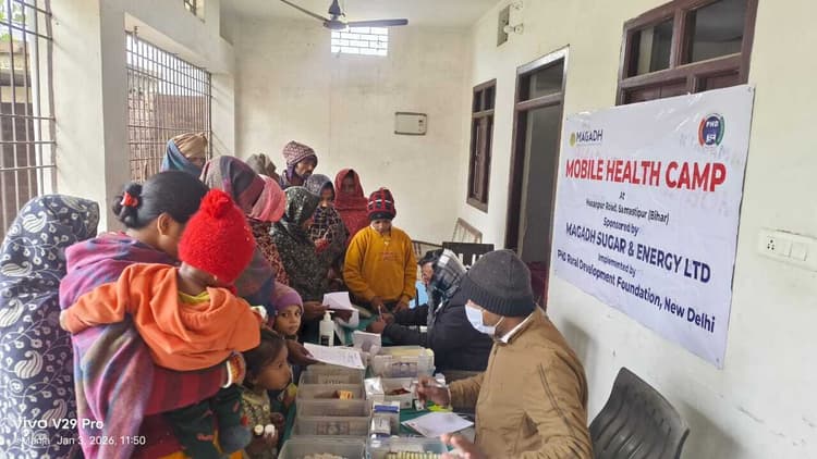 Samastipur News:बिथान : प्रखंड के सखवा गांव में ग्रामीणों के स्वास्थ्य को ध्यान में रखते हुए एक सराहनीय पहल के तहत मोबाइल हेल्थ कैंप का आयोजन किया गया. यह शिविर मगध शुगर एंड एनर्जी लिमिटेड हसनपुर के सहयोग से व पीएचडी रुरल डेवलपमेंट फाउंडेशन, नई दिल्ली के तत्वावधान में आयोजित हुआ. शिविर का आयोजन गांव के सुधारी यादव के आवास पर किया गया. जहां आसपास के गांवों से भी बड़ी संख्या में लोग स्वास्थ्य जांच के लिए पहुंचे. मोबाइल हेल्थ कैंप में मरीजों का निःशुल्क स्वास्थ्य परीक्षण किया गया. आवश्यकतानुसार निःशुल्क दवाइयां वितरित की गई. सामान्य रोगों की जांच की गई. साथ ही लोगों को मौसमी बीमारियों से बचाव, स्वच्छता व नियमित स्वास्थ्य जांच के महत्व के बारे में भी जानकारी दी गई. शिविर का मुख्य उद्देश्य ग्रामीण क्षेत्र के जरूरतमंद लोगों तक सुलभ व बेहतर स्वास्थ्य सेवाएं पहुंचाना रहा. शिविर में डॉ. डब्लू रजक ने मरीजों की जांच की. जबकि प्रोजेक्ट को-ऑर्डिनेटर डॉ. मंजरुल की देखरेख में दवाओं का वितरण किया गया. दोनों चिकित्सकों ने मरीजों को उचित परामर्श भी दिया. कार्यक्रम के दौरान रामसुधारी यादव, रामखेलावन यादव, प्रभु नारायण यादव, शुगर मिल्स के जमादार कृष्ण कुमार, सतीश यादव सहित कई ग्रामीण उपस्थित रहे. ग्रामीणों ने इस शिविर को अत्यंत उपयोगी बताते हुए आयोजकों के प्रति आभार जताया. भविष्य में भी ऐसे स्वास्थ्य शिविर आयोजित करने की मांग की.