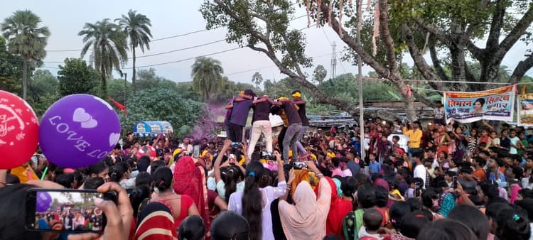 Ganesh Mahotsav concluded: ताजपुर : नगर परिषद क्षेत्र के थाना चौक ताजपुर स्थित ठाकुरबाड़ी परिसर एवं पुरानी दुर्गा स्थान कुम्हार टोला में आयोजित पांच दिवसीय गणेश महोत्सव देर शाम मटका फोड़ कार्यक्रम एवं मूर्ति विसर्जन के साथ संपन्न हुआ. मटका फोड़ कार्यक्रम के लिए दोनों जगहों पर शाम से ही श्रद्धालुओं की भीड़ जुटनी प्रारंभ हो गयी थी. समिति सदस्यों द्वारा कई बार प्रयास करने के बाद मटका को फोड़ा गया. मटका फोड़ के बाद श्रद्धालुओं ने गणेश प्रतिमा को गाजे बाजे के साथ थाना चौक, नीम चौक, रामदयाल चौक, सुभाष चौक होते भेरोखड़ा स्थित काली पोखर में विसर्जित किया. मौके पर चेयरमैन प्रतिनिधि संतोष चौधरी, उप चेयरमैन प्रतिनिधि अनिकेत कुमार, मुखिया राजीव ठाकुर, समिति के पिंटू कुमार चौधरी, प्रभात कुमार, राजू कुमार, सोनू कुमार गुप्ता, निहाल चौधरी, राबड़ी कुमार, मंजीत गुप्ता, कुंदन गुप्ता, संतोष केसरी, मुकेश भगत, गंगाधर उपाध्याय, पिंटू केसरी, पिंटू गुप्ता आदि मौजूद थे.