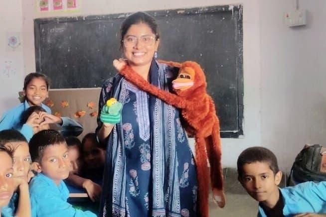 गीत-कहानी के माध्यम से ऐसे रोचक ढंग से पढ़ाती हैं कि बच्चे यही कह उठते हैं मैडम जी अभी मत जाइए. वह कहानी, रंगमंच, त्वरित नवाचार से बच्चों का शैक्षिक संवर्धन कर चुकी हैं. उन्हें कठपुतली बनाना सिखा रहे हैं. अपने नवाचार के माध्यम से शिक्षकों तथा अभिभावकों को भी दायित्व बोध कराते रहते हैं. अपने अनुभव को इन्होंने शिक्षक प्रशिक्षण महाविद्यालय सीटीई समस्तीपुर के प्रशिक्षुकों के साथ भी साझा किया. जहां सॉक्स पपेट, शैडो पपेट तथा वेन्ट्रिलक्विजम जैसे कला के बारे में बताया.– कठपुतली को घुमाते-नचाते शिक्षिका करती है बच्चों से संवाद