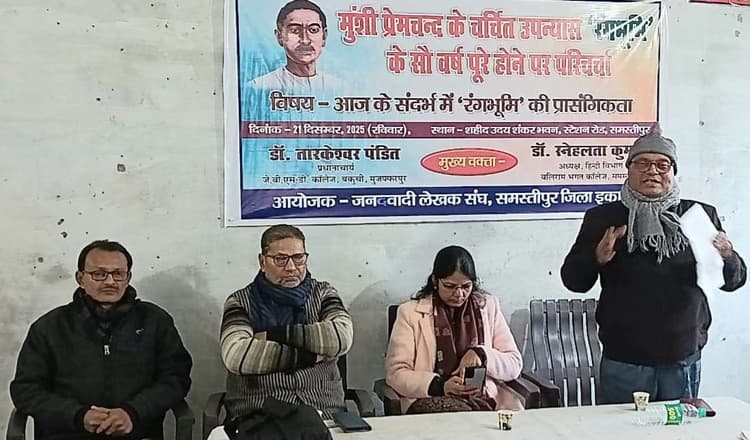 Samastipur News: समस्तीपुर : हिन्दी-उर्दू के मशहूर रचनाकार मुंशी प्रेमचंद के चर्चित उपन्यास ””””रंगभूमि”””” के सौ बरस पूरे होने पर रविवार को जनवादी लेखक संघ जिला इकाई की ओर से एक परिचर्चा का आयोजन स्टेशन रोड स्थित एक सभागार में आयोजित किया गया. ””””रंगभूमि”””” की प्रासंगिकता”””” विषय पर आयोजित परिचर्चा की अध्यक्षता जनवादी लेखक संघ के जिला अध्यक्ष शाह जफर इमाम ने की. जबकि जिला सचिव डॉ अरुण अभिषेक ने संचालन एवं विषय प्रवेश किया. आगत अतिथियों का स्वागत डॉ विष्णुदेव सिंह ने किया. मुख्य वक्ता के रूप में अपनी बात रखते हुए बिहार विश्वविद्यालय मुजफ्फरपुर के जेबीएसडी कॉलेज के प्रधानाचार्य डॉ तारकेश्वर पंडित ने विस्तार से रंगभूमि की चर्चा करते हुए कहा कि इस तरह के उपन्यास की प्रासंगिकता कभी खत्म नहीं होगी क्योंकि उपन्यास के विषय वस्तु की अहमियत आज भी बनी हुई है. एक सूरदास को रंगभूमि का नायक बनाकर प्रेमचंद ने न एक ऐतिहासिक काम किया बल्कि अपने अधिकारों के लिए लड़ने के लिए हजारों लोगों को प्रेरित किया. बीआरबी कॉलेज की हिंदी विभागाध्यक्ष डॉ स्नेह लता ने कहा कि प्रेमचंद ने अपने उपन्यास ””””रंगभूमि”””” में एक सूरदास को नायक बनाकर यह बताने की कोशिश की है कि अपने हक अधिकार की रक्षा के लिए कोई भी आगे आ सकता है. उन्होंने कहा कि प्रेमचंद की सभी रचनाएं लगभग कालजयी हैं. प्रेमचंद ने अपने उपन्यास ””””रंगभूमि”””” में जिन सवालों को उठाया था, वे सवाल आज भी जिन्दा हैं. जनवादी लेखक संघ के जिला संयुक्त सचिव अरविंद कुमार दास के धन्यवाद ज्ञापन के साथ कार्यक्रम का समापन हुआ. परिचर्चा में विभिन्न जन संगठनों की ओर से राम दयाल भारती,सत्य नारायण सिंह, चन्द्रेश्वर राय, डॉ श्यामकांत महतो,राम प्रकाश यादव, शमशाद आलम, सुजीत कुमार, विनय कृष्ण, राजेश वर्मा, आनंदी राय, रंजन कुमार, उपेन्द्र राय, लाल बहादुर राय एवं अनिल कुमार ने हिस्सा लिया.
