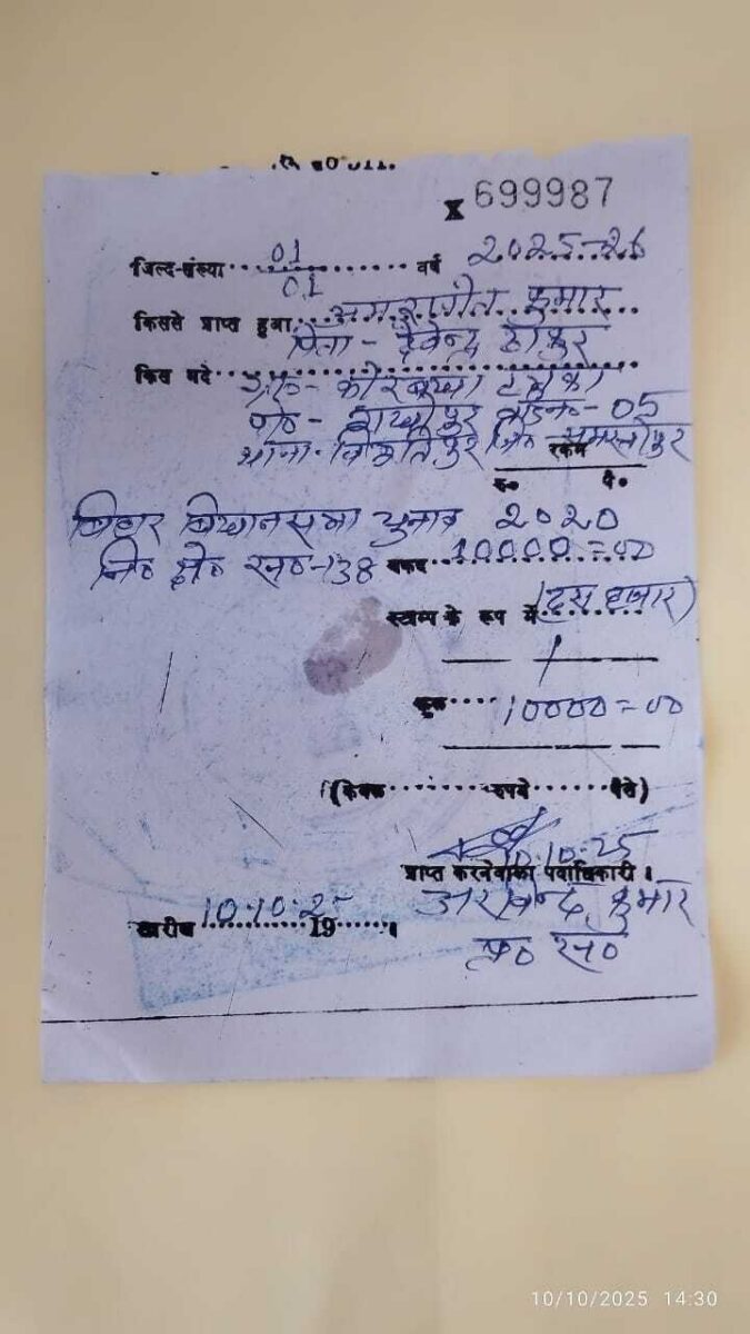 Samastipur News:पहली नजारत रसीद में ही दिखी अशुद्धि
