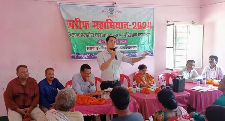 दलसिंहसराय : प्रखंड स्थित ई किसान भवन के सभाकक्ष में खरीफ महाभियान अंतर्गत प्रखंडस्तरीय खरीफ कर्मशाला सह प्रशिक्षण व उपादान वितरण कार्यक्रम का आयोजन किया गया. अध्यक्षता आत्मा अध्यक्ष कमलाकांत निराला ने की. अतिथियों द्वारा संयुक्त रूप से दीप प्रज्वलित कर उद्घाटन किया. संचालन कृषि कॉर्डिनेटर राणा कुमार ने किया. वैज्ञानिक डाॅ. इमटी ने खरीफ की फसलों में कीट व रोग-व्याधि की समस्या व उसके निराकरण के उपायों की जानकारी विस्तार से दी. खरीफ मक्का, धान व दलहनी फसलों की उन्नत खेती की जानकारी दी. पशुपालन पदाधिकारी राज शेखर ने किसानों से दुधारू पशुओं को विभिन्न रोगों से बचाव के लिए समय से टीकाकरण कराने की सलाह दी. अनुमंडल कृषि पदाधिकारी डाॅ. सिद्धार्थ ने किसानों को लाभान्वित होने के लिए विभाग द्वारा निर्मित कृषि ऐप से जुड़ने की अपील की. अभिषेक कुमार ने कृषि विभाग की योजनाओं का व प्रखंड उद्यान पदाधिकारी मनीष कुमार ने विभाग द्वारा संचालित योजनाओं की जानकारी दी. प्रखंड तकनीकी प्रबंधक शांता कुमार चौधरी आत्मा की योजनाओं की जानकारी देते हुए किसानों से आत्मा द्वारा कृषि विषयों से जुड़े प्रशिक्षण में भाग लेने की अपील की. आत्मा अध्यक्ष कमलाकांत निराला ने कृषकों से कृषि, उद्यान व आत्मा से संचालित विभिन्न योजनाओं का भरपूर लाभ उठाने को अपील की. जिला पार्षद सुनीता कुमारी शर्मा ने गुणवतापूर्ण बीज समय से उपलब्ध कराने की मांग की. बीएओ श्रवण कुमार ने खरीफ मक्का व धान का बीज उपलब्धता की जानकारी दी. मौके पर कृषि कॉर्डिनेटर संजय कुमार हिमांशु, आलोक कुमार, गोपाल कुमार चौधरी, उपेंद्र कुमार सिंह, सहायक तकनीकी प्रबंधक अरविंद कुमार पांडेय, अंशु कुमारी, सुरेश कुमार, रमाकांत चौधरी, शिव नारायण महतो, अंजु कुमारी थे.
