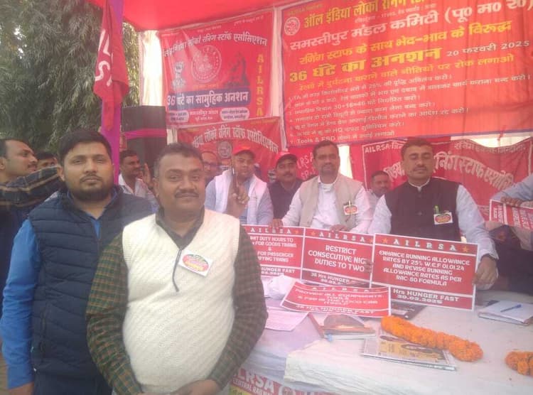 समस्तीपुर : लोको पायलटों की शिकायतों को लेकर ऑल इंडिया लोको रनिंग स्टाफ एसोसिएशन केन्द्रीय कमेटी के आह्वान पर मंडल रेल प्रबंधक कार्यालय के समक्ष गुरुवार को धरना पायलटों ने दिया. सुबह 8 बजे से 36 घंटे का सामूहिक उपवास व धरना का कार्यक्रम हुआ. समस्तीपुर मंडल रेल प्रबंधक कार्यालय के समक्ष भी मंडल के लोको पायलट सामूहिक उपवास पर बैठे. सुबह से 21 फरवरी की शाम तक सभी लोको पायलट भूखे रहकर गाड़ी परिचालन करेंगे. संयुक्त मंडल सचिव रौशन कुमार सिंह इस कार्यक्रम की जानकारी रेल प्रशासन को दे चुके हैं. समस्तीपुर मंडल में यह कार्यक्रम मंडल अध्यक्ष अशोक कुमार की अध्यक्षता में की गई. मंडल के लोको पायलट अपनी मांग को लेकर 36 घंटे के सामूहिक उपवास पर रहकर गाड़ी परिचालन कर रहे हैं. मौके पर एलरसा के जोनल महासचिव एके रावत, रंजीत कुमार, अशोक कुमार, रौशन कुमार सिंह, संजीव कुमार मिश्र, शशिरंजन कुमार, निर्दोष कुमार, रत्नेश सिंह, टुनटुन कुमार, अरुण कुमार, अभिषेक कुमार, विपेश कुमार, पीसी बादल, मनोज कुमार, उमाशंकर चौपाल, रंजीत कुमार, संजय महतो, बबलू यादव, प्रवीण कुमार आदि थे.