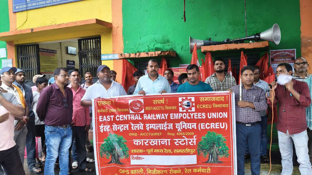 Samastipur News:समस्तीपुर : यांत्रिक कारखाना के गेट पर कारखाना स्टोर्स शाखा के अध्यक्ष फूलेन्द्र पासवान की अध्यक्षता में प्रदर्शन कर गेट मीटिंग की गयी. इसका मुख्य उद्देश्य 8 वें वेतन आयोग की घोषणा होने के बावजूद कर्मचारियों को मिलने वाला बोनस वर्तमान में छठे वेतन आयोग के अनुसार न्यूनतम वेतन 7000 हजार की सीलिंग पर 17951 रुपये दिया जा रहा है उसे बढ़ा कर सातवें वेतन आयोग के अनुसार न्यूनतम वेतन 18000 हजार के सीलिंग पर 46159 रुपये करने की मांग है. मौके पर शाखा सचिवचंद्र प्रकाश, अरविन्द, मनीष कुमार, नवनीत, लक्ष्मण व संतोष कुमार निराला, मुख्तार आलम, विपिन, जीतेन्द्र, मोहन, विजन, शत्रुघ्न राय पंजी आदि थे.