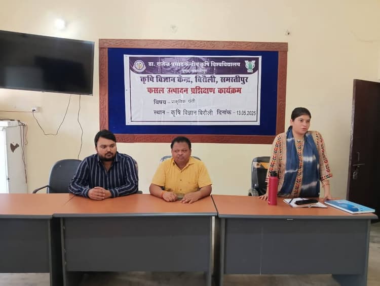 Samastipur News: पूसा : डा राजेंद्र प्रसाद केंद्रीय कृषि विश्वविद्यालय के अधीनस्थ कृषि विज्ञान केंद्र बिरौली के सभागार में फसल उत्पादन प्रशिक्षण के अंतर्गत प्राकृतिक खेती विषय पर जिले के कृषकों को प्रशिक्षण दिया गया. अध्यक्षता करते हुए केंद्र प्रधान डा आरके तिवारी ने कहा कि प्राकृतिक खेती का किसानों के लिए बहुत महत्व है. यह न केवल उन्हें आर्थिक रूप से मजबूत बनाता है बल्कि पर्यावरण और स्वास्थ्य के लिए भी फायदेमंद है. प्राकृतिक खेती में, किसान रासायनिक उर्वरकों, कीटनाशकों और खर-पतवारनाशकों का उपयोग नहीं करते हैं. इसके बजाय वे प्राकृतिक तरीकों से मिट्टी की उर्वरता बढ़ाते हैं. कीटों और बीमारियों से फसलों की रक्षा करते हैं. प्राकृतिक खेती खुशहाल किसान योजना जैसे कार्यक्रम किसानों को इस तकनीक को अपनाने के लिए प्रोत्साहित करते हैं. मौके पर विशेषज्ञ भारती उपाध्याय, सुमित कुमार सिंह आदि मौजूद थे.