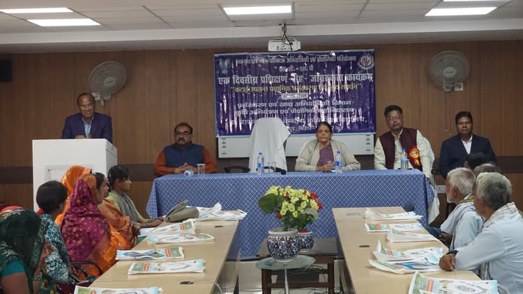 पूसा : डॉ. राजेन्द्र प्रसाद केंद्रीय कृषि विश्वविद्यालय के अंतर्गत परिकटन अभियांत्रिकी एवं प्रौद्योगिकी परियोजना, प्रसंस्करण एवं खाद्य अभियांत्रिकी महाविद्यालय के सभागार में एक दिवसीय प्रशिक्षण सह जागरूकता कार्यक्रम आयोजित किया गया. अध्यक्षता करते हुए डीन डॉ. रामसुरेश ने कहा कि महिला कृषक समूह को विकसित बनाने की जरूरत है. जिससे किसानों के उत्पाद को मूल्यसंवर्धित कर बेहतर आय दिलाया जा सके. प्रशिक्षण सह जागरूकता कार्यक्रम आये लदौरा, रामपुरा, मिल्की तथा कल्याणपुर किसानों की महिला समूह संबंधित किसान को कटाई उपरांत सभी अनाज, फल सब्जी खासकर आलू प्रसंस्करण, खासकर धान की कुटाई के लिए उपयोग की जाने वाली मशीन पर बल दिया. डॉ. विशाल कुमार परियोजना अन्वेषक ने चल रहे मूल्यवर्धित प्रोडक्ट के बारे में किसानों को जानकारी दी. डॉ. दिनेश रजक वरीय वैज्ञानिक सह परियोजना अन्वेषक ने मूल्यवर्धित उत्पाद तथा फलों एवं सब्जियों के बारे में भंडारण, आलू से चिप्स बनाने की तरीका के बारे में तथा सौर शुष्क द्वारा अनाज, फल एवं सब्जी को भंडारण, अनाज लाबा यंत्र और मक्के का भूटा पकाने के यंत्रों की विस्तृत जानकारी दिया गया एवं किसानों को तेल निष्कासित यंत्र तथा ग्रेन मिलिंग के बारे में तथा अनाज भंडारण के लिए हेरमेटिक बैग (वायु रुद्ध) भंडारण जानकारी दी गई. वरिष्ठ वैज्ञानिक डॉ. पीडी शर्मा, ई. अनुपम अमिताभ वैज्ञानिक सह परियोजना अन्वेषक ने मंच संचालन एवं तथा मकई निष्कासन यंत्र के बारे में विस्तृत जानकारी दी.