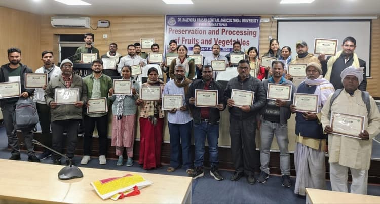 पूसा : डा राजेंद्र प्रसाद केंद्रीय कृषि विश्वविद्यालय स्थित संचार केंद्र के पंचतंत्र सभागार में फलों और सब्जियों के प्रसंस्करण विषय पर चल रहे तीन दिवसीय प्रशिक्षण प्रमाणपत्र वितरण के साथ सम्पन्न हुआ. अध्यक्षता करते हुए प्रसार शिक्षा उप निदेशक प्रशिक्षण डा विनिता सतपथी ने कहा कि फलों और सब्जियों के प्रसंस्करण से फ्रोजन सब्जियां और ताजे फल जैसी चीजें लंबे समय तक टिकती हैं. उनकी गुणवत्ता भी बेहतर होती है. फलों और सब्जियों के प्रसंस्करण से खाद्य घटकों के रूप में उपयोग किये जाने वाले उत्पादों के उत्पादन को बढ़ाने में मदद मिलती है. उन्होंने कहा कि प्रसंस्करण से फलों और सब्जियों का सेल्फ लाइफ बढ़ता है. यह ज्यादा समय तक खराब नहीं होती. प्रसंस्करण के जरिए फलों और सब्जियों का रंग, स्वाद, बनावट और पोषण बरकरार रहता है. कटाई के बाद होने वाले नुकसान को कम करने से कृषि और बागवानी फसलों का उत्पादन बढ़ता है. प्रसंस्कृत फलों और सब्जियों की आपूर्ति साल भर आसानी से उपलब्ध रहती है. प्रसंस्करण से किसानों को फलों और सब्जियों का सही दाम मिलता है. डा सतपथी ने बताया कि प्रसंस्करण उद्योग में युवाओं को रोजगार मिलता है. फलों और सब्जियों का प्रसंस्करण करते समय, खाद्य पदार्थों के संपर्क में आने वाले उपकरणों को साफ-सफाई से रखना जरूरी है. वैज्ञानिक डा के प्रसाद एवं टीसीएस ढोली ने प्रतिभागियों को पपीता जैम, पपीता स्क्वैश, अमरूद जेली, टमाटर केचप, टमाटर सॉस, आंवला च्यवनप्राश आदि उत्पादों का व्यावहारिक प्रदर्शन के साथ प्रशिक्षण दिया. प्रशिक्षण में छह जिले से एटीएम, बीटीएम सहित प्रगतिशील किसानों ने हिस्सा लिया.