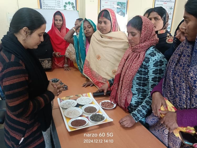 पूसा : डा राजेंद्र प्रसाद केंद्रीय कृषि विश्वविद्यालय के अधीनस्थ कृषि विज्ञान केंद्र बिरौली में चार दिवसीय मोटे अनाज से बच्चों के ऊपरी आहार बनाने विषय पर प्रशिक्षण का आयोजन किया गया. इसमें विलुप्त होते-मोटे अनाज जैसे बाजार जावर मरुआ अन्य सामग्री का उपयोग कर ऊपरी आहार बनाने की प्रक्रिया बताई गई. सभी मोटे अनाज एवं अन्य सामग्री को प्रसंस्करण कर उपयोग किया. ताकि यह सभी की पोषण गुणवत्ता बढ़े. बच्चों को पचाने में भी आसानी मिले. कृषि विज्ञान केंद्र की गृह विज्ञान की विषय वस्तु विशेषज्ञ वर्षा कुमारी ने बताया कि आमतौर पर महिलाएं छोटे बच्चों को छह माह के बाद महंगे पैकेट खाद्य सामग्री देती हैं. जिसका मूल्य बहुत अधिक होता है. लेकिन हम अपने दैनिक उपयोग में उपलब्ध अनाज दाल एवं मोटे अनाज का उपयोग कर उच्च पोषणयुक्त ऊपरी आहार बना सकते हैं. केंद्र के वरीय वैज्ञानिक सह प्रधान डॉ रविंद्र तिवारी ने बताया कि देश में बढ़ रहे कुपोषण को हम अपने स्तर से इन ऊपरी आहार का उपयोग कर कमी ला सकते हैं. क्योंकि पांच साल तक के बच्चों में कुपोषण होने की संभावना अधिक होती है. हम घरेलू अनाजों से घरेलू स्तर पर प्रसंस्करण कर कम लागत में ऊपरी आहार बना सकते हैं.