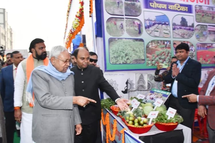 समस्तीपुर : प्रगति यात्रा के दौरान सोमवार को विभिन्न विभाग द्वारा लगाये गये स्टाॅल का अवलोकन करने के बाद ज्योंहि मुख्यमंत्री नीतीश कुमार प्रधानमंत्री पोषण योजना (एमडीएम) के स्टॉल पर आते है, तो उनके कदम अचानक से रुक जाते हैं और स्टॉल पर उपजे सब्जियों को देखकर डीएम से पूछताछ करते हुए विभिन्न विद्यालयों में लगाए गए पोषण वाटिका के निर्माण व उपज की तारीफ करते हुए कहते है कि उत्तम स्वास्थ्य एवं पोषण का आधार बनेगा पोषण वाटिका है. इस संबंध में डीपीओ एमडीएम सुमित कुमार सौरभ ने बताया कि पटोरी प्रखंड स्थित मध्य विद्यालय हसनपुर सूरत, मध्य विद्यालय लगमा दक्षिण, प्राथमिक विद्यालय चकवा, प्राथमिक विद्यालय मिल्की यादव टोल वार्ड दो, मध्य विद्यालय रहुआ, उमवि धिवाही, प्राथमिक विद्यालय नाजिरपुर वार्ड तीन में लगे पोषण वाटिका में उपजे सब्जियों को स्टाॅल पर लगाया गया था. पीएम पोषण योजना के तहत जिले के स्कूलों में संचालित मध्याह्न भोजन में ताजा सब्जियों का उपयोग करने के उद्देश्य से किचन गार्डेन सह पोषण वाटिका निर्माण किया गया था. स्कूल परिसर में खाली जमीन नहीं होने की स्थिति में स्कूल की छत और खाली जगहों में गमले का उपयोग कर किचन गार्डेन का निर्माण कराना था.