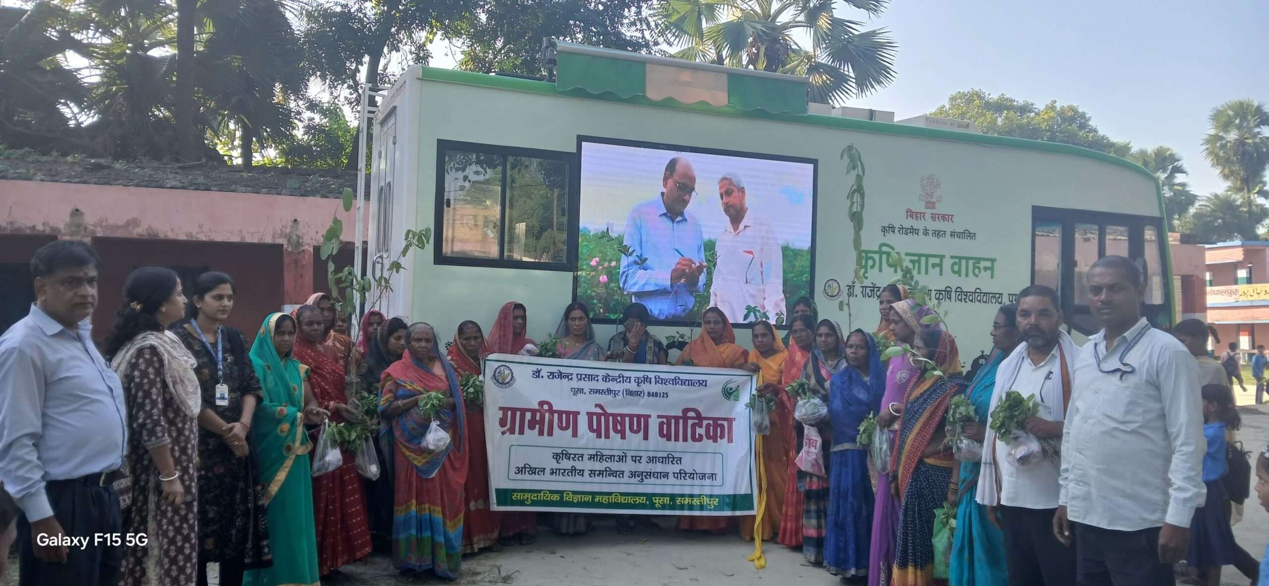 Samastipur News:पूसा : भारत सरकार के कृषि एवं किसान कल्याण मंत्रालय के अंतर्गत संचालित न्यूट्री स्मार्ट विलेज कार्यक्रम के तहत कृषि ज्ञान वाहन गंगापुर गांव पहुंचा. इस अवसर पर महिला किसानों के लिए प्रशिक्षण सह बीज वितरण कार्यक्रम का आयोजन किया गया. एआईसीआरपी ऑन वूमन इन एग्रीकल्चर परियोजना से जुड़ी हुई है. अध्यक्षता करते हुए वैज्ञानिक सह नोडल अधिकारी डॉ. बिनीता सतपथी ने महिला किसानों को न्यूट्री स्मार्ट विलेज की अवधारणा व पोषण वाटिका की महत्ता के बारे में विस्तार से जानकारी दी. उन्होंने बताया कि पोषण वाटिका के माध्यम से परिवारों को न केवल पौष्टिक आहार प्राप्त होता है, बल्कि यह आजीविका सशक्तिकरण और आत्मनिर्भरता की दिशा में एक महत्वपूर्ण कदम है. कृषि विज्ञान केंद्र बिरौली के वैज्ञानिक ईं. विनिता कश्यप ने भी किसानों को संबोधित करते हुए कहा कि पोषण-संवेदनशील कृषि प्रणाली ग्रामीण परिवारों में खाद्य एवं पोषण सुरक्षा सुनिश्चित करने का प्रभावी माध्यम है. इस अवसर पर वाहन के माध्यम से किसानों के बीच तकनीकी वीडियो फिल्मों का प्रदर्शन किया गया. जिसमें पोषण आधारित खेती, सब्जी उत्पादन, बीज संरक्षण, बाजार से जुड़ाव की आधुनिक तकनीक प्रदर्शित की गयी. किसानों ने वाहन में स्थापित डिजिटल उपकरणों और ऑडियो-विज़ुअल माध्यमों के जरिये कृषि से जुड़ी नई जानकारी प्राप्त की.
