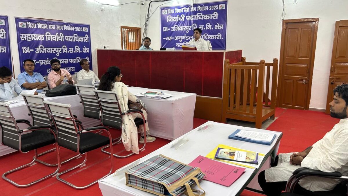 Samastipur News:दलसिंहसराय : उजियारपुर व विभूतिपुर विधानसभा क्षेत्र में चुनाव को लेकर शुक्रवार को नामांकन प्रक्रिया शुरू हो गई. पहले दिन नामांकन नहीं हुआ. हालांकि उजियारपुर विधानसभा से पांच प्रत्याशियों ने नामांकन को लेकर नाजिर रसीद कटाया है. अवर निर्वाचन पदाधिकारी रवि रंजन कुमार ने बताया कि उजियारपुर विधानसभा क्षेत्र से नामांकन को लेकर 5 प्रत्याशियों ने नाजीर रसीद कटाया. वहीं विभूतिपुर विधानसभा के नामांकन के लिए अनुमंडल मुख्यालय में डीसीएलआर कार्यलय में बनाया गया है. जिसमें दोपहर तक एक प्रत्याशी ने नाजीर रसीद कटाया. नामांकन को लेकर अनुमंडल से लेकर डीसीएलआर कार्यालय पर सुरक्षा के कड़े इंतजाम थे. इसके लिए सड़क पर बेरकेडिंग कराते हुए दंडाधिकारी व पुलिस पदाधिकारी की प्रतिनियुक्ति की गई है. प्रत्याशी के नामांकन सुविधाओं को लेकर हेल्प डेस्क बनाया गया है. जहां नामांकन से जुड़ी जानकारी पदाधिकारी द्वारा दी जाने की व्यवस्था थी. सड़क पर बेरकेटिंग को लेकर निर्वाचन पदाधिकारी सह एसडीओ किशन कुमार, डीसीएलआर प्रशांत रमणिया, डीएसपी विवेक कुमार शर्मा सहित कई वरीय अधिकारियों ने तैनात दंडाधिकारी और पुलिस पदाधिकारी को नामांकन स्थल पर भीड़ न लगाने सहित बिना काम के किसी को भी अंदर प्रवेश न करने का आदेश दिया.