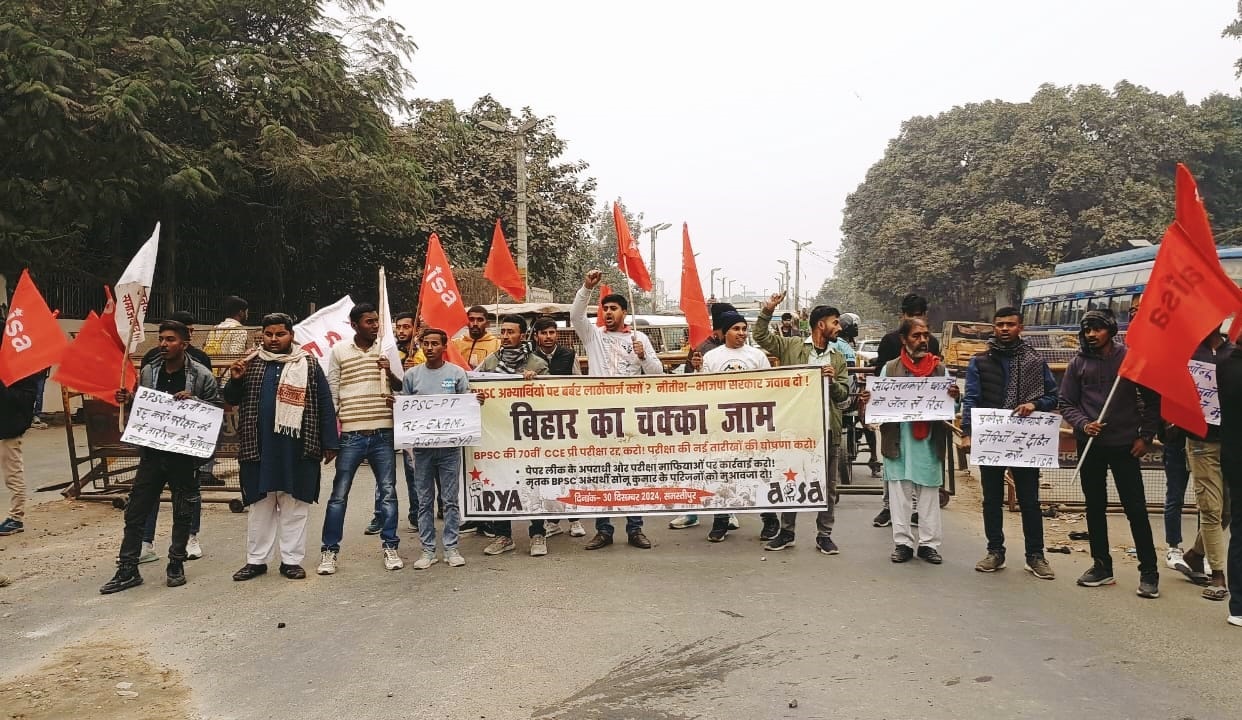 समस्तीपुर : पटना में बीपीएससी 70 वीं संयुक्त प्रतियोगिता परीक्षा में अनियमितता व प्रश्न पत्र लीक के खिलाफ विरोध कर रहे छात्रों पर लाठीचार्ज के खिलाफ आइसा व आरवाइए ने सोमवार को चक्का जाम किया. ओवरब्रिज चौराहा के निकट प्रदर्शनकारियों ने समस्तीपुर-दरभंगा-पटना जाने वाले मुख्य मार्ग को घंटों जमा रखा. इससे समस्तीपुर-दरभंगा मुख्य पथ पर दोनों तरफ गाड़ियों की लंबी लाइन लग गई. ट्रैफिक पुलिस उपाध्यक्ष एवं नगर थाने की पुलिस की पहल के बाद चक्का जाम समाप्त हुआ. मौके पर प्रदर्शनकारियों ने सभा की. अध्यक्षता आइसा जिला सचिव सुनील कुमार व आरवाइए जिला सचिव रौशन कुमार ने संयुक्त रुप से की. एसएफआई जिला सचिव छोटू भारद्वाज, नीलकमल व आइसा अध्यक्ष लोकेश राज ने संचालन किया. सम्बोधित करते हुए आरवाइए जिला सचिव रौशन कुमार ने कहा कि 70 वीं बीपीएससी संयुक्त प्रतियोगिता परीक्षा में अनियमितता एवं पेपर लीक के खिलाफ बीपीएससी अभ्यर्थी लोकतांत्रिक तरीके से आंदोलनरत हैं. जिस पर आयोग व सरकार सुध लेने की बजाय अभ्यर्थियों पर लाठीचार्ज और वाटर कैनन चलवा रही है. इससे बीपीएससी अभ्यर्थियों और छात्र संगठनों में आक्रोश व्याप्त है. जेडीयू- भाजपा सरकार छात्रहित में बीपीएससी 70 वीं संयुक्त प्रतियोगीता परीक्षा रद्द कर पुनः परीक्षा की घोषित करें. अभ्यर्थियों पर दर्ज मुकदमे को वापस लेने की मांग की. लाठीचार्ज करने वाले पुलिस पदाधिकारियों पर सख़्त कार्रवाई करने की मांग की. आइसा जिला सचिव रौशन कुमार ने कहा कि आये दिन बिहार में आयोजित प्रतियोगिता परीक्षा में पेपर लीक व अनियमितता आम बात हो गई है. इस पर ठोस नीति सरकार को बनाना चाहिए. पेपर लीक व अनियमितता के दोषियों पर सख़्त कार्रवाई सुनिश्चित करे. जिला प्रभारी सुरेंद्र प्रसाद सिंह ने कहा कि प्रशांत किशोर सस्ती लोकप्रियता पाने के लिए पटना में आंदोलनरत बीपीएससी अभ्यर्थियों को आगे कर पुलिस की लाठी खाने की बजाय अभ्यर्थियों को पिटते छोड़ भाग खड़े हुए. मौके पर दरख़्शॉ जवी, राहुल राय, नवीन कुमार, नीतीश राणा, अनिल कुमार, मो. फैयाज, संजीव कुमार उर्फ गोलू, गौतम कुमार, मो. तौसीफ, दीपक पासवान, रोहित कुमार, सन्नी राज, सोनू कुमार, विवेक सिंह, आयुष कुमार, अभिषेक कुमार, प्रदीप कुमार, रंजीत कुमार, मोनू, गौरव कुमार, रोहित कुमार, मनीष कुमार, जितेंद्र सहनी, अनिकेत कुमार, प्रशांत कुमार, मो. इमरान, आदित्य, उपेन्द्र राय, जयंत कुमार, प्रखंड सचिव अनिल कुमार चौधरी आदि थे.
