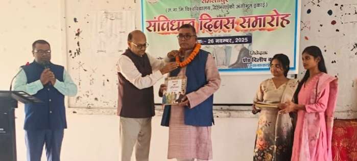 Samastipur News:समस्तीपुर : शहर के राम निरीक्षण आत्माराम महाविद्यालय समस्तीपुर में स्नातकोत्तर राजनीति विज्ञान विभाग एवं आईक्यूएसी के संयुक्त तत्वावधान में संविधान दिवस समारोह का आयोजन किया गया. अध्यक्षता महाविद्यालय के प्रधानाचार्य प्रो. दिलीप कुमार ने की. मंच संचालन राजनीति विज्ञान विभाग के विभागाध्यक्ष सह बर्सर डॉ राजीव रौशन ने किया. मुख्य अतिथि डॉ दुर्गेश कुमार राय, राज किशोर प्रसाद शर्मा ने दीप प्रज्वलित कर कार्यक्रम का उद्घाटन किया. साथ ही सभी ने डॉ भीमराव अंबेडकर के चित्र पर माल्यार्पण एवं पुष्पांजलि अर्पित कर संविधान निर्माण में महत्वपूर्ण योगदान को याद किया. महाविद्यालय के प्रधानाचार्य प्रो. दिलीप कुमार ने कहा कि हमारा संविधान एक सुंदर और खुशहाल भारत के बनाने में अपना अहम भूमिका निभाता है. डॉ राजीव रौशन ने कहा कि संविधान भारतीय लोकतंत्र की आत्मा है. मुख्य अतिथि डॉ दुर्गेश कुमार राय ने कहा कि सरकार भारत की संविधान के आधार पर नारी सशक्तिकरण को सामाजिक न्याय के साथ आगे बढ़ा रही है. राजकिशोर प्रसाद शर्मा ने कहा कि यह हमारे भारतीय संविधान की खूबसूरती है कि विधायिका, कार्यपालिका और न्यायपालिका में इतना बेहतर सामंजस्य है कि उसने पूरे देश को एकता एवं अखंडता के सूत्र में बांध रखी है. छात्र-छात्राओं ने अपने विभिन्न अंदाजों गीत- संगीत, भाषण, कविता,नाटक आदि के माध्यम से संविधान से संबंधित विचारों की प्रस्तुतियां दी. मनोविज्ञान विभाग की छात्रा कुमारी करुणानिधि ने साक्षरता गीत गाकर संविधान के आधार को मजबूत किया. सपना कुमारी, नेहा और श्रुति सुमन ने अपनी कविता के माध्यम से संविधान की बातों को उकेरा. पिंटू कुमार, मुस्कान कुमारी,शांभवी, विशाल गौरव आदि ने भाषण के माध्यम से विचारों को साझा किया. इस बीच ’लोकतंत्र के तीन स्तंभ’ विषय पर एक नाटक मंचन किया गया, जिसमें संविधान के तीन महत्वपूर्ण अंग विधायिका, कार्यपालिका और न्यायपालिका के कार्य प्रणाली को स्नातकोत्तर राजनीति विज्ञान विभाग के प्रथम सेमेस्टर की छात्राएं प्रिया भारती,साक्षी साव, आयुषी सिंहा और दिव्या भारती ने जीवंत बनाया. महाविद्यालय के जंतु विज्ञान के सहायक प्राध्यापक डॉ. उमाशंकर प्रसाद ने धन्यवाद ज्ञापन किया.