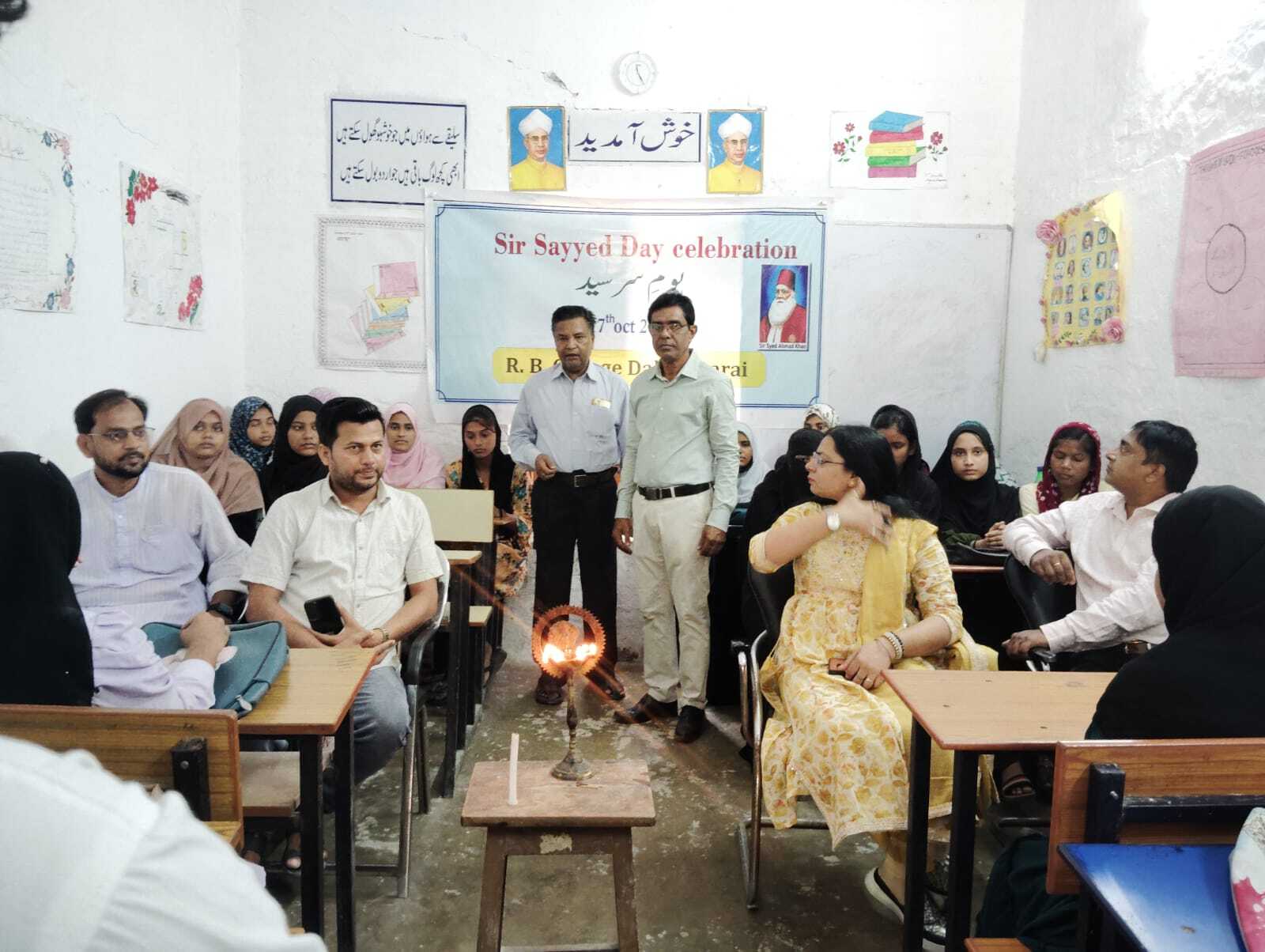 दलसिंहसराय . स्थानीय आरबी कॉलेज के उर्दू विभाग की ओर से सर सैयद अहमद खां की जयंती मनायी गयी. इस मौके पर प्रधानाचार्य डॉ वीरेंद्र कुमार चौधरी की अध्यक्षता में क्विज प्रतियोगिता आयोजित की गयी. इसमें उर्दू विभाग के छात्र-छात्राओं ने भूमिका निभाई. संचालन के लिए छात्रों को चार ग्रुप ए, बी, सी और डी में बांटा गया था. यह सैयद अहमद खां के व्यक्तित्व एवं कृतित्व पर केंद्रित था. प्रतियोगिता में ग्रुप बी ने प्रथम स्थान प्राप्त किया. इसमें आइसा परवीन, शाहीन फिरदौस, सादिया कसफ व अंशु कुमारी शामिल थी. द्वितीय स्थान पर ग्रुप ए रहा. जिसमें आइसा खातून, रुखसाना नफीस, मो. वसीम अकरम एवं मो. तबरेज शामिल थे. ग्रुप डी ने तृतीय स्थान प्राप्त किया. जिसमें गुलफशा परवीन, गुलशन परवीन, नजराना परवीन एवं समा परवीन शामिल थे. प्राध्यापक डॉ महताब आलम खान ने कार्यक्रम की विधिवत शुरुआत करते हुए सर सैयद अहमद खान के व्यापक संदेश को छात्रों के सामने प्रस्तुत करते हुए इस कार्यक्रम की रेखा से छात्रों को अवगत कराया. मौके पर हिंदी विभागाध्यक्ष डॉ सुनील कुमार सिंह, उर्दू विभाग के विभागाध्यक्ष डॉ सबा मामून रहमानी, डॉ मुकेश कुमार झा, डॉ कुतुबुद्दीन अंसारी व अंग्रेजी विभाग से शिवानी प्रकाश उपस्थित थे.