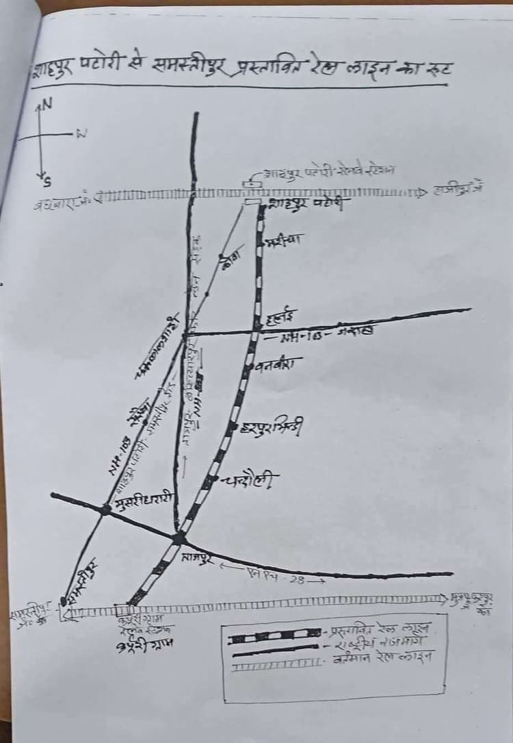 Samastipur News:समस्तीपुर : शाहपुर पटोरी से कर्पूरीग्राम तक नई रेल लाइन की मांग एक बार फिर जोर पकड़ने लगी है. दो सदस्यीय प्रतिनिधिमंडल ने पूर्व मध्य रेल हाजीपुर के उप महाप्रबंधक से मुलाकात कर शाहपुर पटोरी से कर्पूरीग्राम समस्तीपुर तक नई रेल लाइन निर्माण की मांग को लेकर ज्ञापन सौंपा है. प्रतिनिधिमंडल ने ज्ञापन में अनुरोध किया कि समस्तीपुर जिला अंतर्गत प्रस्तावित रेल लाइन के निर्माण के लिए आगामी बजट में सर्वेक्षण कार्य का प्रावधान किया जाये. ताकि इस महत्वपूर्ण परियोजना पर शीघ्रता से कार्य आरंभ हो सके. नई रेल लाइन तैयार हो जाने से न केवल समस्तीपुर जिला बल्कि इसके आसपास के क्षेत्रों में भी विकास की नई राहें खुलेंगी. प्रस्तावित रूट में इसे शाहपुर पटोरी, मरीचा, हलई, वनवीरा, हरपुर भिंडी, निकसपुर, चंदौली, ताजपुर होते हुए कर्पूरीग्राम तक निर्माण की मांग की गई है. पूर्व में कई स्तरों से सर्वे कराकर इसे स्वीकृत करने की डिमांड रखी जा चुकी है.