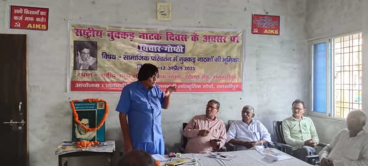 Samastipur News:समस्तीपुर : जनवादी लेखक संघ के द्वारा रंगकर्मी सफदर हाशमी की जयंती राष्ट्रीय नुक्कड़ नाटक दिवस के रूप में मनायी गयी. इस मौके पर जनवादी लेखक संघ और जनवादी सांस्कृतिक मोर्चा की जिला इकाई की ओर से स्टेशन रोड स्थित शहीद उदय शंकर स्मारक भवन में एक विचार-गोष्ठी आयोजित की गयी. जनवादी लेखक संघ के जिला अध्यक्ष शाह ज़फ़र इमाम और जनवादी सांस्कृतिक मोर्चा के जिला अध्यक्ष रामविलास सहनी ने संयुक्त रूप से अध्यक्षता की. सर्वप्रथम सफदर हाशमी के चित्र पर पुष्प अर्पित कर उन्हें श्रद्धांजलि दी गयी. सांस्कृतिक मोर्चा की ओर से राम प्रवश चौरसिया ,रामप्रीत सहनी तथा नरेन्द्र कुमार टुनटुन ने इन्कलाबी गीत पेश किये. जनवादी सांस्कृतिक मोर्चा के जिला सचिव चन्देश्वर राय के संचालन में हुई विचार गोष्ठी में स्वागत भाषण शंभू शरण यादव ने दिया. जनवादी लेखक संघ के कार्यकारी जिला सचिव डॉ. अरुण अभिषेक ने विषय प्रवेश कराते हुए कार्यक्रम की महत्ता पर प्रकाश डाला. जन संस्कृति मंच के जिला अध्यक्ष एवं समस्तीपुर कॉलेज समस्तीपुर के पूर्व अंग्रेजी विभागाध्यक्ष डॉ. प्रभात कुमार ने मुख्य वक्ता के रूप में अपनी बातें रखीं.