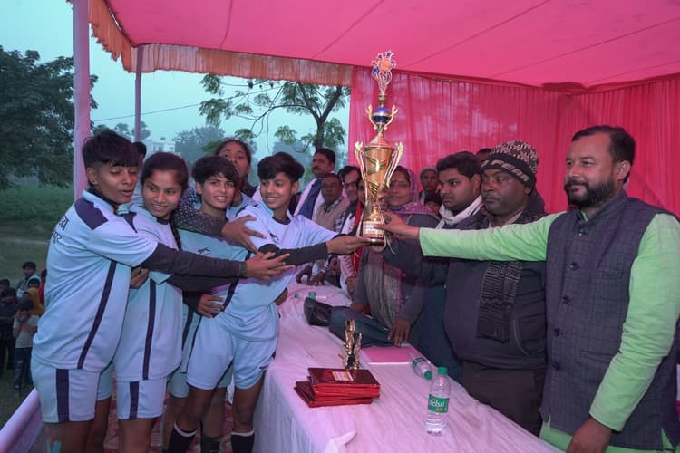 दलसिंहसराय : स्थानीय आरबी कॉलेज में जनौस के तत्वावधान में जारी स्व. सुरेंद्र प्रसाद यादव की स्मृति में महिला फुटबॉल टूर्नामेंट के फाइनल मुकाबला वूमेन शॉकर एकेडमी दलसिंहसराय व एकलव्य क्लब समस्तीपुर के बीच खेला गया. इससे पूर्व स्व. सुरेंद्र प्रसाद यादव की तस्वीर पर फूल-माला अर्पित कर श्रद्धांजलि दी गई. साथ ही राष्ट्रगान के बाद एडवा राज्याध्यक्ष नीलम देवी, सुलेखा कुमारी, रामाश्रय महतो, महेश कुमार, सत्यनारायण सिंह, इमाम साहेव, मनोज प्रसाद सुनील, रामदयाल भारती, संजय कुमार, उपेंद्र राय, आनंद कुमार, चंदन प्रसाद, रामसेवक राय,कुंदन पासवान, अर्जुन यादव ने खिलाड़ियों से परिचय प्राप्त किया. खेल के दौरान दोनों ही टीम ने एक गोल के लिए काफी मशक्कत किया लेकिन निराशा हाथ लगी. इसके बाद दोनों ही टीम अतिरिक्त समय में गोल करने का प्रयास किया लेकिन इसमें भी निराश होना पड़ा. जिसके बाद पेनाल्टी शूटआउट से विजेता एवं उपविजेता का निर्णय लिया गया. इसमें एकलव्य क्लब समस्तीपुर की टीम ने 2-0 से इस मैच को जीतकर टूर्नामेंट की विजेता बनी. विजेता एवं उपविजेता टीम को ट्रॉफी एवं उपहार से सम्मानित किया गया. मौके पर पर कुंदन पासवान, संजय कुमार, अर्जुन राय, विधानचंद्र, रामबाबू यादव, उत्सव जायसवाल, रामू मालाकर, अखिलेश राय, कुंदन यादव, महेंद्र सिंह, नवनीत यादव, सूरज पाठक, अरशद आलम आदि थे.