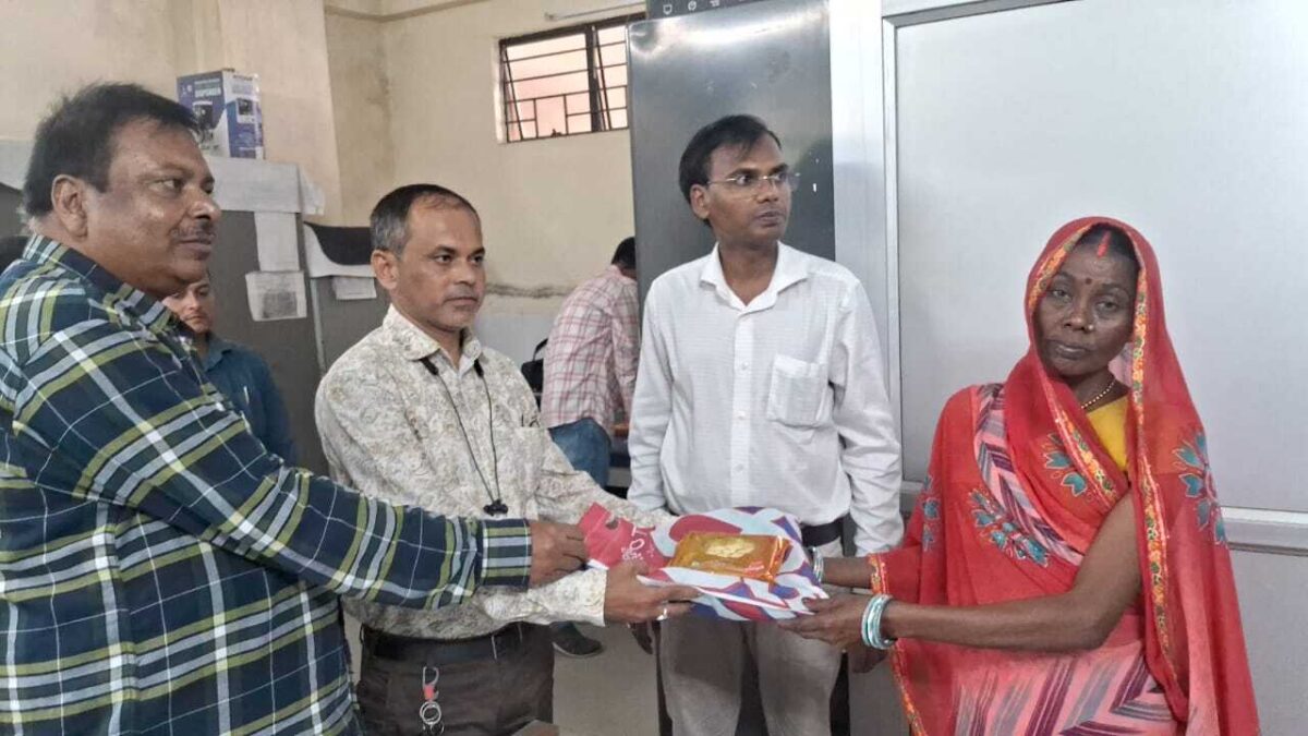 सामुदायिक स्वास्थ्य केंद्र में सफाई कर्मी को छठ महापर्व को लेकर अंग-वस्त्र एवं मिठाई देकर सम्मानित किया गया.