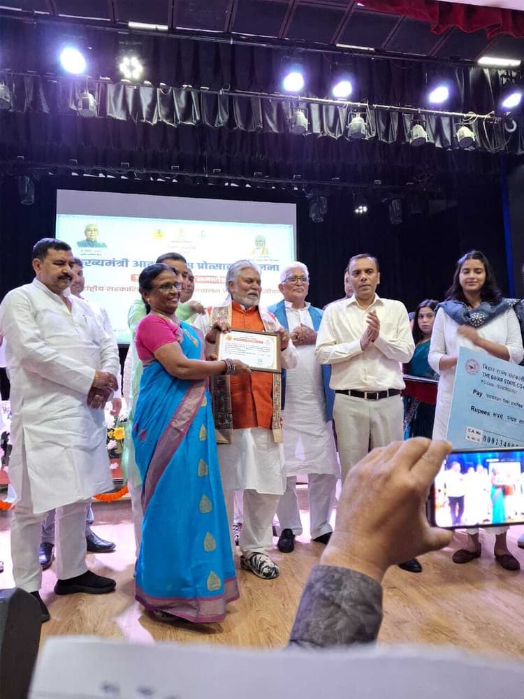 सरायरंजन : प्रखंड के सरायरंजन पश्चिमी पैक्स की शानदार उपलब्धियां को लेकर राज्य सरकार ने शुक्रवार को सहकारिता भवन पटना में मेडल, प्रशस्ति पत्र एवं 15 लाख का चेक प्रदान किया. चेक राशि पैक्स की अध्यक्ष नीतू देवी को राज्य के सहकारिता मंत्री डॉ. प्रेम कुमार द्वारा दी गई. बता दें कि राज्य स्तरीय कमेटी की अनुशंसा के आधार पर मुख्यमंत्री आदर्श पैक्स प्रोत्साहन योजना अंतर्गत इस पैक्स को चुना गया था. ज्ञात हो कि इस पैक्स को पूर्व में भी ढेरों पुरस्कारों से नवाजा जा चुका है. 2007 में राज्य के ग्रामीण विकास मंत्री वैद्यनाथ महतो द्वारा, 2008 में बिहार राज्य के मुख्यमंत्री नीतीश कुमार द्वारा, 2009 में राज्य के सहकारिता मंत्री गिरिराज सिंह द्वारा, 2010 में भारत सरकार के कृषि मंत्री शरद पवार द्वारा एवं 2012 में भारत के राष्ट्रपति प्रणब मुखर्जी द्वारा इस पैक्स के सचिव विपिन कुमार ईश्वर को पुरस्कृत किया जा चुका है. पटना के सहकारिता भवन में पुरस्कार वितरण के मौके पर सहकारिता सचिव धर्मेंद्र सिंह, निबंधक इनायत खान, राज्य सहकारिता बैंक के अध्यक्ष रमेश चौबे, विधायक जितेंद्र सिंह आदि मौजूद रहे.