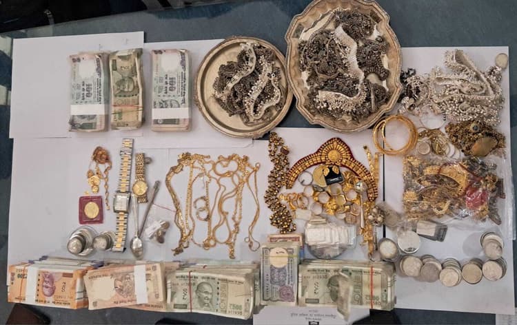 छापेमारी के दौरान पुलिस ने गिरफ्तार आराेपितों के पास से भारी मात्रा में चोरी के सोने चांदी के आभूषण बरामद किया. इसमें सोने के 4 चूड़ी, 2 ब्रासलेट, एक हार, 29 अंगूठी, 7 इयर रिंग, 2 बाली, 5 कान के टॉप, 3 चकती, 2 पत्तर, 1 मांगटीका, 7 नाक का बेसर, 1 नथिया, 9 चेन, 243 चांदी का सिक्का, 20 बिस्किट, 1 किंग सिक्का, 2 चाबी रिंग, 1 कलम, 2 सुनसुन, 1 चलना, 1 सिंदुर का किया, 8 पत्तर, 4 अंगूठी, 1 कमरघनी, 30 पायल, 2 बिछिया सेट, 8 बिछिया, 1 जोड़ी बेडा, 1 मूर्ति, 2 प्लेट, 7 पायल, 1 सिक्का, 4 अंगूठी का पत्थर, 2 घड़ी, 1 रुद्राक्ष की माला, 1 केदारनाथ का सिक्का और 5 लाख नकद बरामद किया.डिस्क्लेमर: यह प्रभात खबर समाचार पत्र की ऑटोमेटेड न्यूज फीड है. इसे प्रभात खबर डॉट कॉम की टीम ने संपादित नहीं किया है