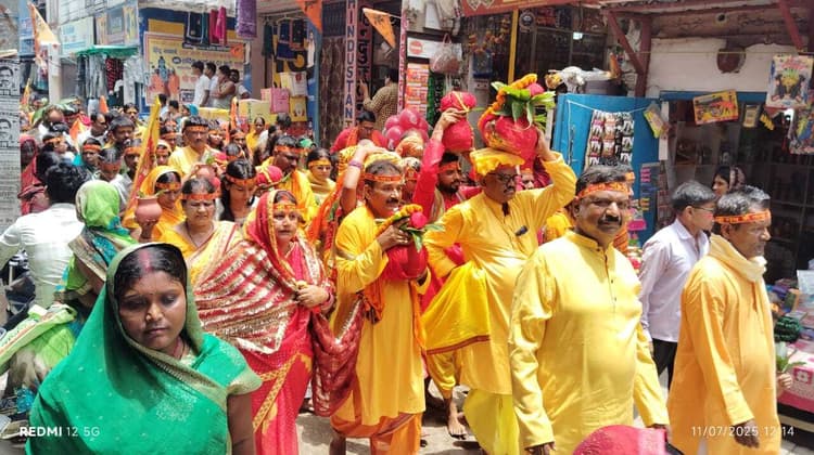Samastipur News:मोहिउद्दीननगर : प्रखंड के शंकर चौक स्थित शिव मंदिर में स्थापित शिव लिंग में प्राण-प्रतिष्ठा को लेकर शुक्रवार को भव्य कलश शोभा यात्रा निकाली गई. 501 कुंवारी कन्याएं कलश को सिरोधार्य कर गंगा के सरारी घाट से लाये गये जल को भरने के लिए मोहिउद्दीननगरहाई स्कूल के मैदान पहुंची. जहां पंडितों के वैदिक मंत्रोच्चार के मध्य कलश में जल भरा गया. इस दौरान शोभा यात्रियों के भोलेनाथ की जयकारे से सम्पूर्ण वातावरण गुंजायमान हो रहा था. जगह-जगह शोभा यात्रियों ने धर्म के प्रति लोगों को आस्था जागृत किया. नगर परिक्रमा के उपरांत कलश व शोभा यात्री मंदिर परिसर पहुंचे. जहां तैंतीस कोटि देवी-देवताओं के आह्वान के बीच कलश का प्रतिष्ठापन किया गया. तदुपरांत शोभा यात्रिओं को खीर भोजन कराया गया. इधर, कल्याणपुर बस्ती स्थान स्थित वाया नदी के ओझा घाट पर दो दिवसों अष्टयाम यज्ञ का शुभारंभ किया गया. इस मौके पर अरुण त्रिवेदी, गौतम पांडेय, विनोद झा, राधा कृष्ण साह, निर्दोष यादव, जितेंद्र कुमार महतो, विनोद रजक, रणवीर साह, सुरेश महथा, राजू महथा, पूनम देवी, रेणु देवी, विजय साह, अमन कुमार गुप्ता, अनिल महतो, मनोज महतो, प्रमोद महतो, मुरारी मंडल मौजूद थे.