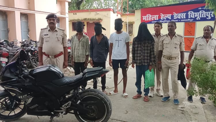 विभूतिपुर : थाना क्षेत्र के बेलसंडी तारा स्थित आवासीय परिसर से गायब मोटरसाइकिल वाहन चेकिंग के दौरान बरामद किया गया. अनुसंधान के क्रम में पुलिस द्वारा चार बाइक लुटेरों को गिरफ्तार जेल भेज कर लुटेरा गिरोह का खुलासा कर दिया है. बाइक लुटेरों की पहचान प्रिंस कुमार, विष्णु कुमार, दिलीप कुमार, परितोष कुमार के रूप में की गयी है. घटना के संबंध में थानाध्यक्ष आनंद कुमार कश्यप ने बताया कि गत पांच मार्च की रात्रि दरवाजे पर से बेलसंडी तारा गांव से बाइक चोरी हुई थी. इसके खिलाफ मोटरसाइकिल स्वामी अनुज कुमार ने अज्ञात चोर के खिलाफ प्राथमिकी दर्ज कराई थी. पुलिस कानूनी बाध्यता के अनुसार तीन महीने में साक्षी नहीं मिलने की वजह से केस बंद कर उसे न्यायालय को समर्पित कर दिया था. विभूतिपुर पुलिस गत दो दिन पहले बाइक चेकिंग कर रही थी. इस दौरान संदिग्ध युवक बाइक के साथ पकड़ा गया. पूछताछ के क्रम में संतोषजनक जवाब नहीं देने पर उसे थाना लाया गया. सत्यापन में जानकारी मिली कि पूर्व में बेलसंडी तारा निवासी अनुज कुमार द्वारा मोटरसाइकिल चोरी की प्राथमिकी दर्ज कराई गई थी, वही गाड़ी बरामद हुई है. जानकारी कांड के आवेदक को दिया गया. उसका सत्यापन कराया गया. इस दौरान पकड़े गये संदिग्ध युवक प्रिंस कुमार से पूछताछ के क्रम में दरभंगा जिले के बहेरी थाना क्षेत्र के बागवानी निवासी विष्णु कुमार, रोसड़ा थाना क्षेत्र के महुली निवासी दीपक कुमार और शिवाजीनगर थाना क्षेत्र के परितोष कुमार को गिरफ्तार कर पूछताछ की गयी. आवश्यक कार्रवाई के बाद न्यायिक हिरासत में भेज दिया गया है.