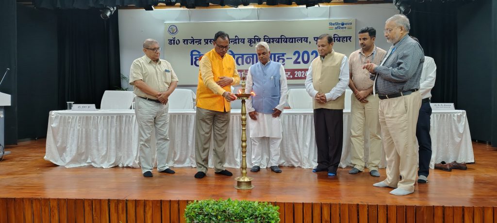 डॉ. राजेंद्र प्रसाद केंद्रीय कृषि विश्वविद्यालय के विद्यापति सभागार में हिंदी चेतना माह का आयोजन किया गया. कुलपति डॉ. पुण्यव्रत सुविमलेंदु पांडेय ने कहा कि हिंदी समृद्ध भाषा है. हिंदी सभी भाषाओं को अपने में समाहित कर लेती है.