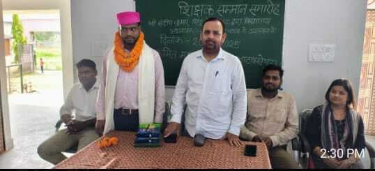 Education news from Samastipur:सरायरंजन : उत्क्रमित मध्य विद्यालय लाटबसेपुरा में मंगलवार को शिक्षक सम्मान समारोह का आयोजन किया गया. प्रधानाध्यापक अनन्त कुमार राय ने कहा कि शिक्षक समाज के प्रकाश स्तंभ होते हैं. बच्चों को शिक्षित बनाने के साथ साथ संस्कारवान बनाने में भी उनकी अप्रतिम भूमिका होती है. समाज एवं राष्ट्र के नवनिर्माण में शिक्षक पूरी तल्लीनता व शिद्दत से अपने कर्तव्यों का निर्वहन करते हैं. विद्यालय के शिक्षक संदीप कुमार सिंह को बिहार लोक सेवा आयोग द्वारा विद्यालय अध्यापक पद पर दरभंगा जिले में चयनित होने पर अंगवस्त्र, पाग एवं अन्य सम्मान सामग्री प्रदान कर प्रधानाध्यापक ने सम्मानित किया. मौके पर शिक्षक अजय कुमार, संजीव कुमार, नागमणि आशुतोष, गंगा नारायण विद्यार्थी, राजेश्वर राम, अनामिका आनन्द, ज्योति सिंह, कंचन रानी, रेखा मिश्रा, रंजीत कुमार साहू, पिंकी कुमारी, गोविन्द कुमार, प्रिंस कुमार जायसवाल, रतीश कुमार झा, नीलम कुमारी, ममता कुमारी, शिखा अम्बष्ट, गायत्री कुमारी, नीतीश कुमार, सीमा कुमारी, हरिकांत प्रकाश, शेखर प्रसाद, पूजा कुमारी आदि ने भी अपने विचार व्यक्त किये.