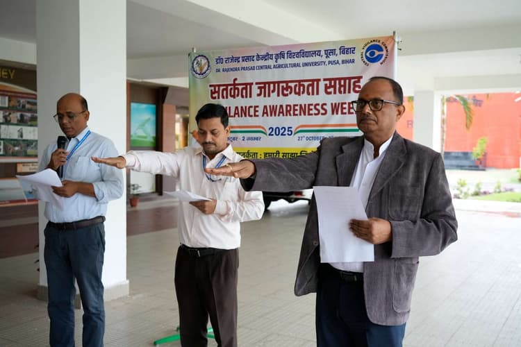 Samastipur News:पूसा : डॉ. राजेन्द्र प्रसाद केन्द्रीय कृषि विश्वविद्यालय के प्रशासनिक भवन में सरदार वल्लभभाई पटेल के जयंती के अवसर पर सतर्कता जागरुकता सप्ताह 2025 का आयोजन किया गया. कार्यक्रम को संबोधित करते हुए कुलपति डॉ. पीएस पाण्डेय ने कहा कि सतर्कता जागरूकता सप्ताह का उद्देश्य अखंडता और ईमानदारी की संस्कृति को बढ़ावा देना है. उन्होंने कहा कि भ्रष्टाचार के खिलाफ सतर्कता केवल सरकार का कर्तव्य नहीं है बल्कि सभी नागरिकों और कर्मचारियों की सामूहिक जिम्मेदारी है. उन्होंने कहा कि इस अवसर पर हम सबको यह भ्रष्टाचार के दानव से देश को मुक्त करने के लिए दृढ़ संकल्प लेना चाहिए तभी देश 2047 तक विकसित राष्ट्र के संकल्प को पूरा कर सकेगा. कुलपति डॉ. पांडेय ने सभी उपस्थित कर्मचारियों को सतर्कता को लेकर सामूहिक शपथ भी दिलायी. केन्द्रीय सतर्कता आयोग द्वारा निर्धारित इस वर्ष का विषय सतर्कता हमारी साझा जिम्मेदारी है. इस थीम पर 27 अक्टुबर से 02 नवम्बर 2025 तक विश्वविद्यालय में सतर्कता जागरुकता सप्ताह का आयोजन किया जा रहा है. इसे विश्वविद्यालय के सभी इकाईयों में भी आयोजित किया गया और संबंधित कर्मचारियों को शपथ दिलाई गई. कार्यक्रम का आयोजन मुख्य सतर्कता पदाधिकरी, डॉ. एसके साहु की अध्यक्षता में सतर्कता इकाई की ओर से मनीष कुमार शर्मा एवं ज्योतिष कुमार चन्द्रवंशी द्वारा किया गया. इस अवसर पर कुलसचिव डॉ. पीके प्रणव, निदेशक अनुसंधान, डॉ. एके सिंह, डॉ. आरके झा, डॉ. उमा कान्त बहेरा, डॉ. रमन त्रिवेदी, डॉ. आरएम शर्मा , डॉ. पीके झा, डॉ. एसके साहु, डॉ. सतीश कुमार सिंह, डॉ. रविश चन्द्रा समेत विभिन्न शिक्षक वैज्ञानिक एवं पदाधिकारी मौजूद थे.
