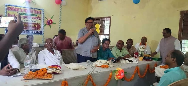 Samastipur News:विभूतिपुर : उमावि मिश्रौलिया के प्रभारी प्रधानाध्यापक सह बिहार माध्यमिक शिक्षक संघ के दरभंगा प्रमंडल के संयुक्त सचिव अनिल कुमार की सेवानिवृति के उपरान्त गुरुवार को विदाई सह सम्मान समारोह आयोजित कर किया गया. अध्यक्षता माध्यमिक शिक्षक संघ के जिलाध्यक्ष डॉ बालो यादव ने की. संचालन संघ के युवा नेता बाबू प्रसाद शर्मा ने किया. समारोह को स्थानीय विधायक अजय कुमार, बीइओ मनोज कुमार मिश्र, रामदेव राय, अरविन्द कुमार दास, निलय कुमार, प्रियरंजन ठाकुर, विनोद कुमार प्रभाकर, कुशेश्वर पंडित, हरेराम महतो, रमाशंकर प्रसाद, रामसागर सिन्हा, राम सागर महतो, बालेश्वर महतो, राम नारायण सिंह, रामचंद्र प्रसाद सिंह, प्रधानाध्यापक डॉ संजय प्रसाद, गणेश पोद्दार, अशोक कुमार साह, राज कुमारी, रेखा रानी, सरिता कुमारी, ललितेश्वर प्रसाद, सिद्धार्थ शंकर, कुमार शुभम, शफ़ीउल्लाह मसीह, दुर्गानंद चौधरी,रामाश्रय महतो, विष्णुदेव प्रसाद सिंह, राम पुनीत वर्मा, बबलू कुमार, संजय कुमार ने कार्यक्रम को संबोधित किया.