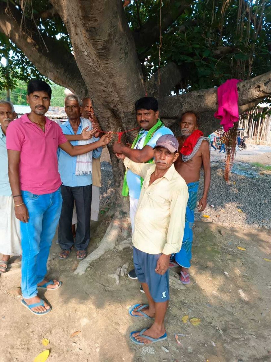 Samastipur News:वृक्षों में रेशम का धागा बांध ग्रामीणों ने लिया रक्षा का संकल्प