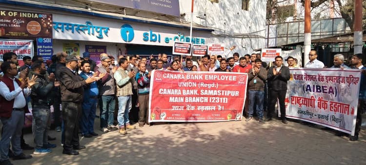 Samastipur News:बैंक कर्मियों की हड़ताल से जिले में 50 करोड़ का लेनदेन प्रभावित