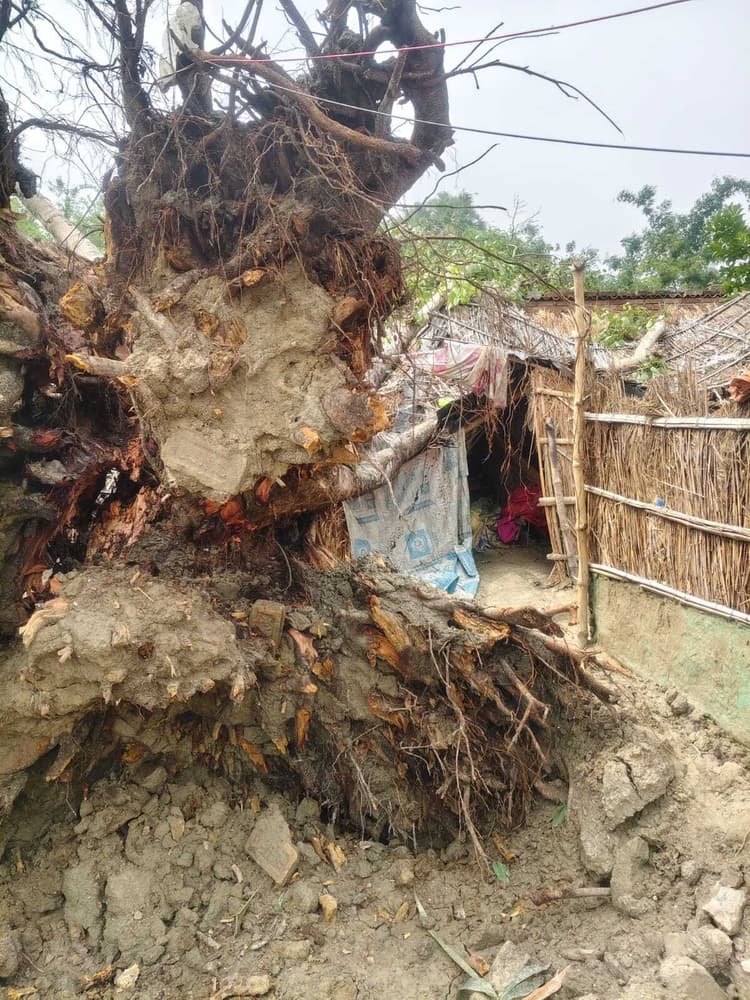 पेडों के गिरने से कई घरों को भारी नुकसान पहुंचा है, वहीं कई जगहों पर आवागमन बाधित हुआ है. मुखिया ब्रजेश प्रसाद राय,पिन्टू गिरी,समाज सेवी संतोष कुमार यादव आदि के द्वारा प्रशासन की सूचना देते हुए अविलंब मुआवजा की मांग की गई है. बताया जाता है कि आधी रात के बाद लोगों के घर पर तेज आंधी के कारण अचानक पेडों का गिरना शुरू हो गया, जिसके कारण लोगों में अफरातफरी मच गयी. कई लोगों ने भागकर अपनी जान बचायी. इसी तरह कई मवेशियों को भी सुरक्षित ठिकानों पर लगाया गया. हवा की रफ्तार इतना तेज था कि बरगद और पीपल के कई बड़े-बड़े पेड़ धराशाई हो गये. लोगों का कहना है की कितनी बड़ी त्रासदी पहले देखने को कभी नहीं मिली क्योंकि जिस हिसाब से हवा का रफ्तार था, उससे कुछ भी बचा पाना मुश्किल हो रहा था. काफी देर तक लोगों की सांसे अटकी रही. दर्जनों कच्चा मकान गिर गये जिससे कि लोगों को अब खुले आसमान के नीचे रात गुजारना मजबूरी हो गया है।डिस्क्लेमर: यह प्रभात खबर समाचार पत्र की ऑटोमेटेड न्यूज फीड है. इसे प्रभात खबर डॉट कॉम की टीम ने संपादित नहीं किया है